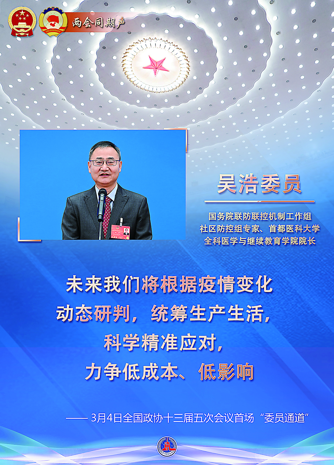 “自疫情暴发以来,我一共参与了11个省、20场重大社区疫情防控工作。我们以最小的社会成本,获得了最大的社会效益。”国务院联防联控机制工作组社区防控组专家、首都医科大学全科医学与继续教育学院院长吴浩委员一亮相,就吸引了媒体的“长枪短炮”。