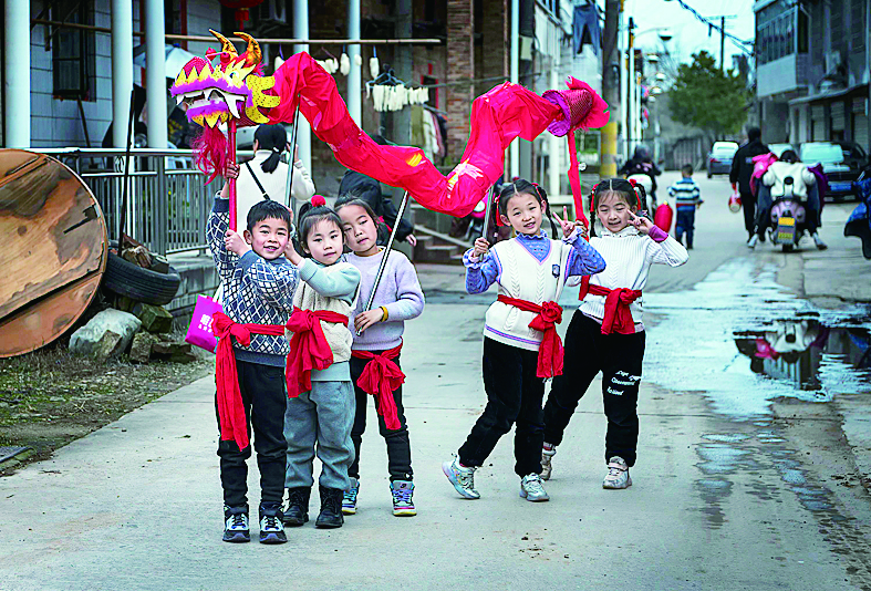 元宵节一群在老街舞龙的孩子,给老街平添了许多生气。