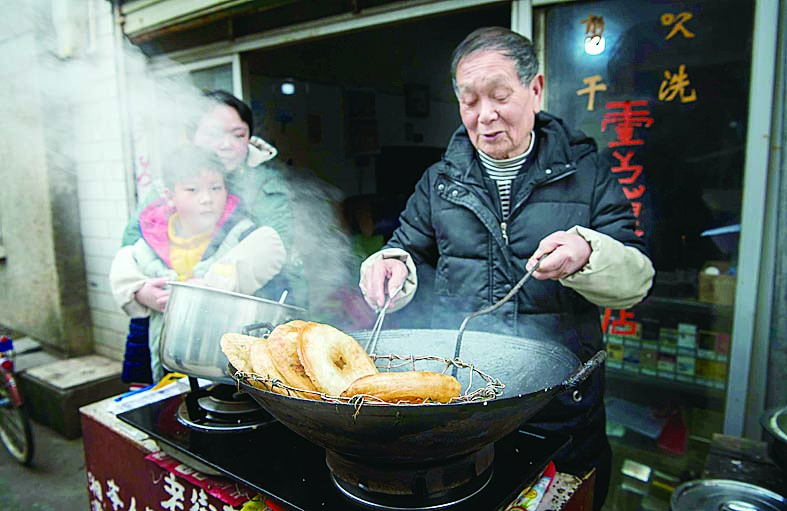 老街的葱油饼,香气诱人,还是小时候的味道。