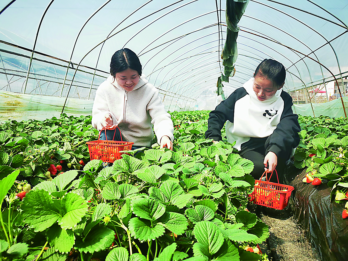 3月2日,天气晴朗,位于渌口区朱亭镇黄洲村的熊猫生态草莓园里,绿油油的蔓叶丛中,红润鲜亮的草莓点缀其中、煞是可爱,散发出成熟后的诱人清香,游客三三两两分散在大棚里,提着果篮体验采摘的乐趣。“周末游客更多,一天有几十拨。”园子的主人谢清华介绍,随着村里基础设施、道路和卫生环境的改善,来玩的游客也越来越多,他种的水果蔬菜销售不愁。基地还吸纳了村里10名老年劳动力,让他们就近务工增收。