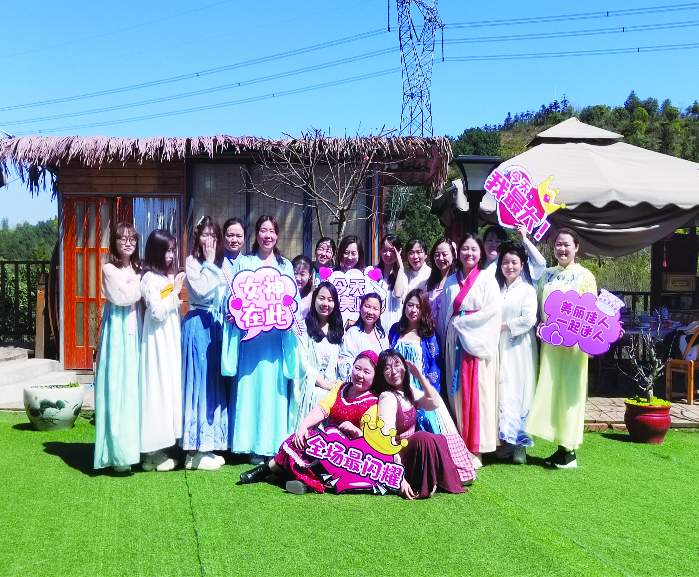 茨菇塘街道女职工身着汉服拍照,尽显女性柔美。