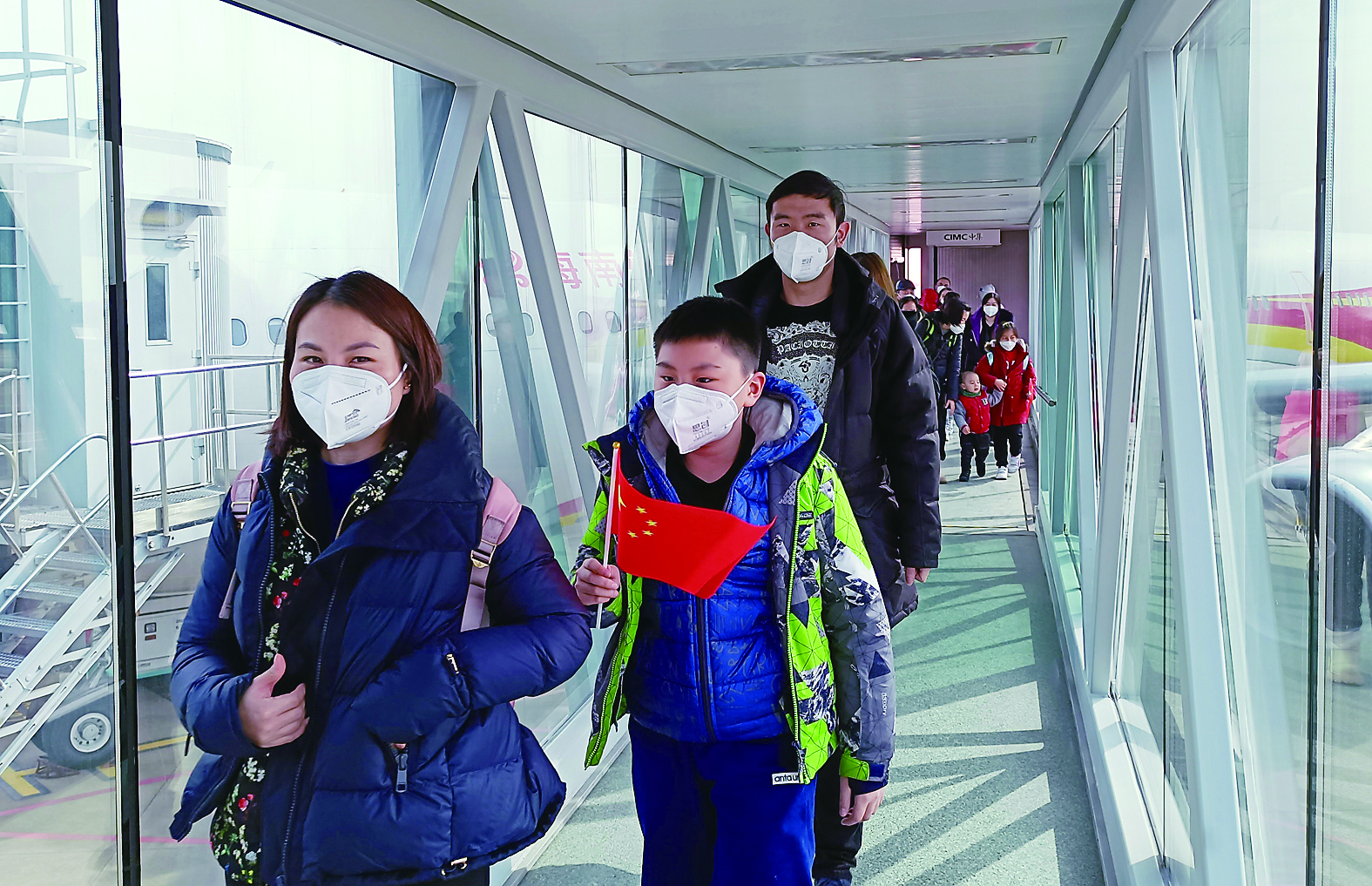3月10日,又有两架接返自乌克兰撤离中国公民的临时航班先后安全回到国内。图为3月10日,中国公民乘坐第八架临时航班抵达杭州萧山国际机场。