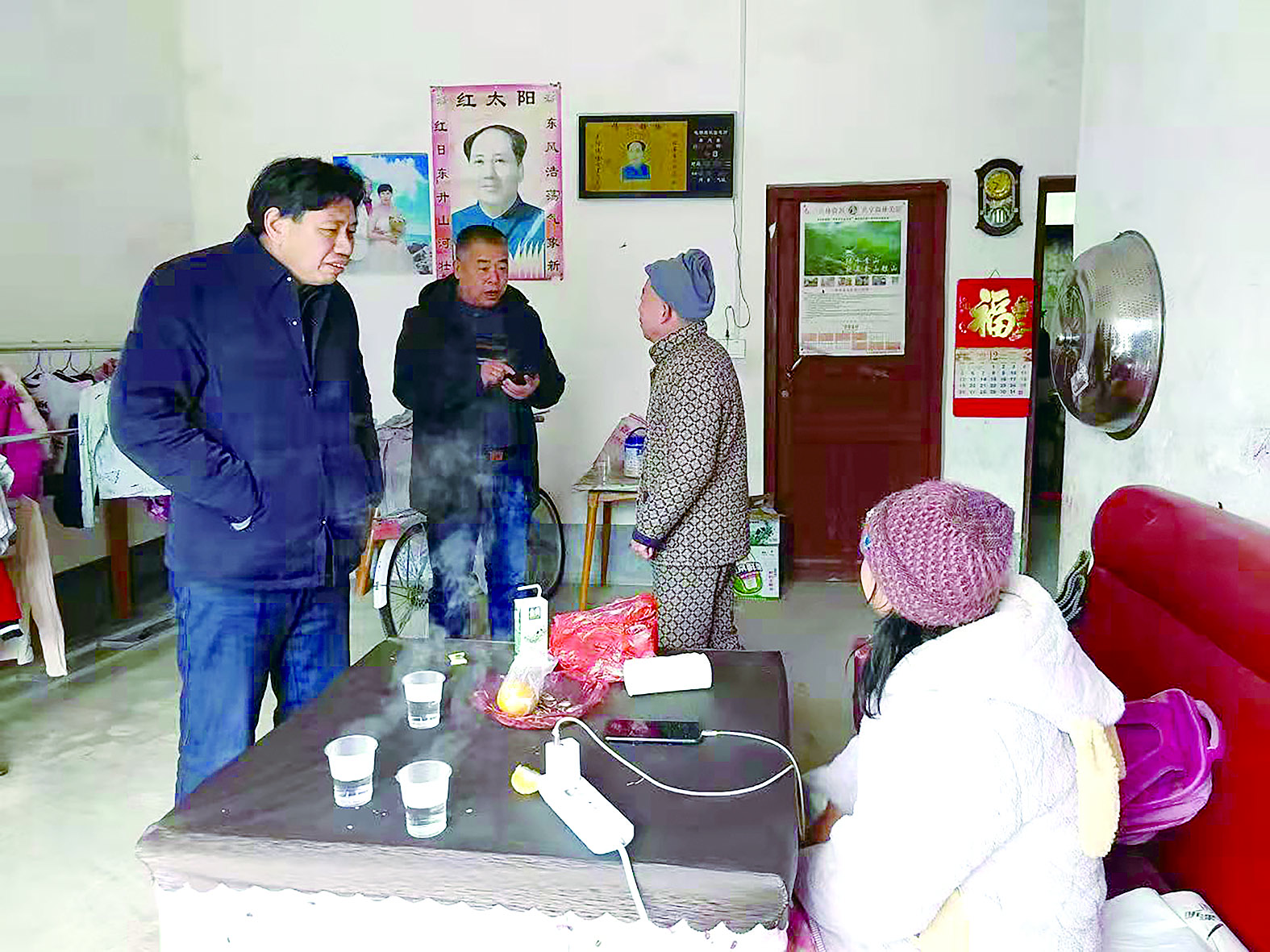 罗立新(左一)和工作队员去到张文一家看望慰问。受访者 供图