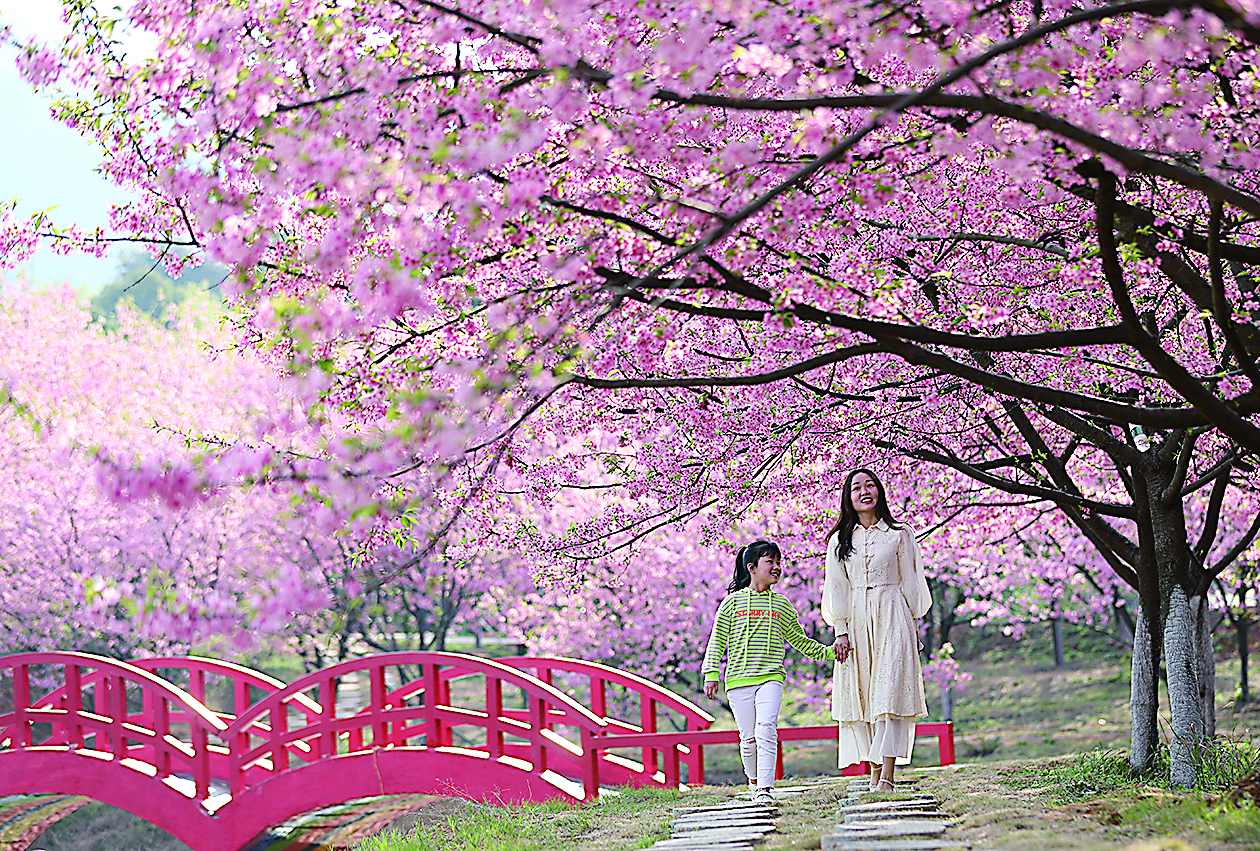 3月12日,市民在常宁市罗桥镇樱花园里赏花。 三月春暖,万物复苏,湖南省常宁市罗桥镇樱花园里的3000多亩樱花竞相绽放,吸引游客前来踏青赏花,乐享春光。 新华社记者 赵众志 摄