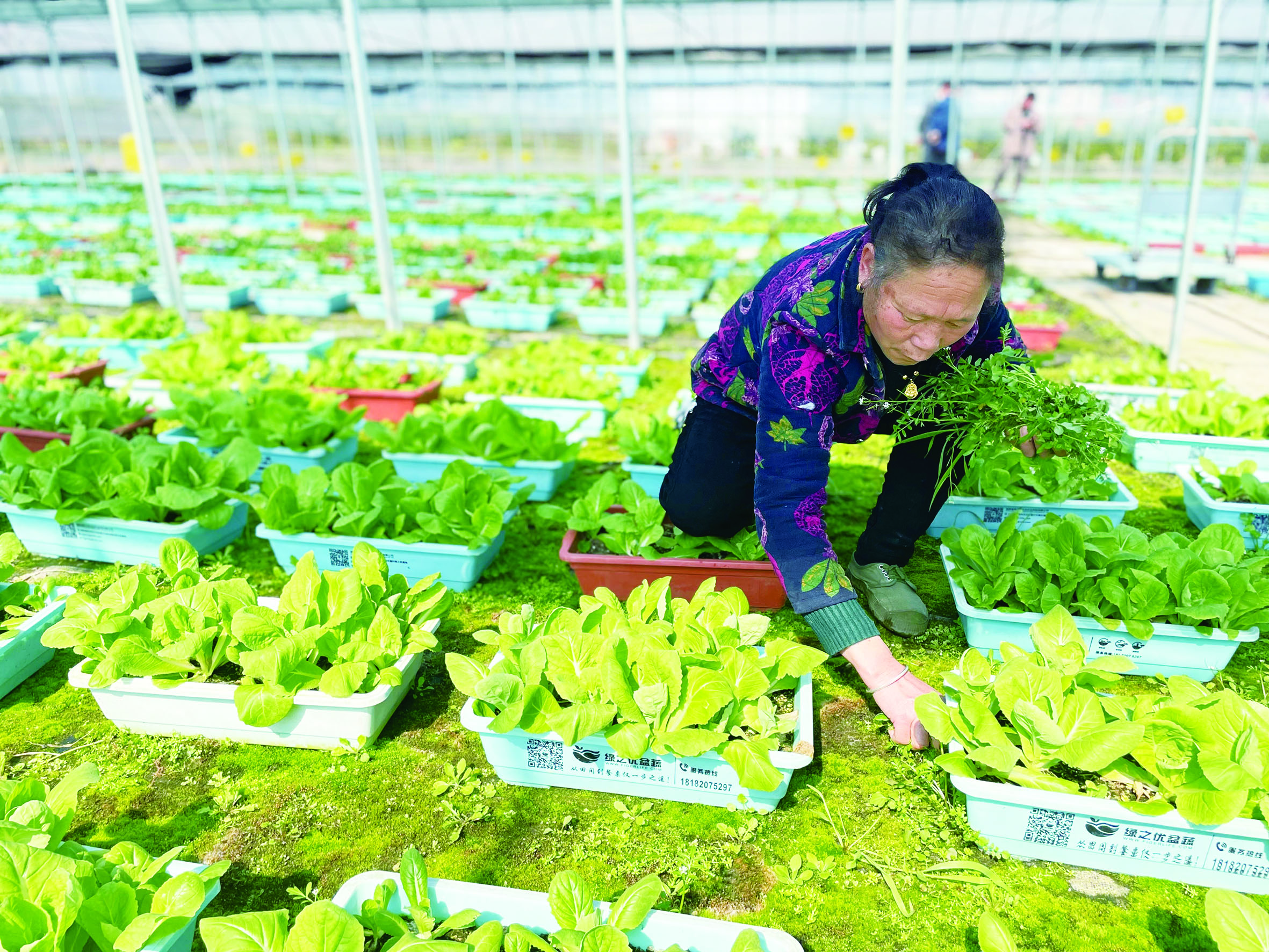 三月春暖农事忙。眼下,正是蔬菜育苗管理的好时机,雷打石镇的蔬菜种植基地处处呈现出一派春意盎然、生机勃勃的景象。农民正抢抓农时,有条不紊进行棚架整理、平地开沟、育苗施肥等种植工作。他们为丰富市民“菜盘子”而精耕细作。 图为3月9日上午,雷打石镇伞铺村,村民正在绿之优生态农业种植基地的蔬菜大棚里拔草。