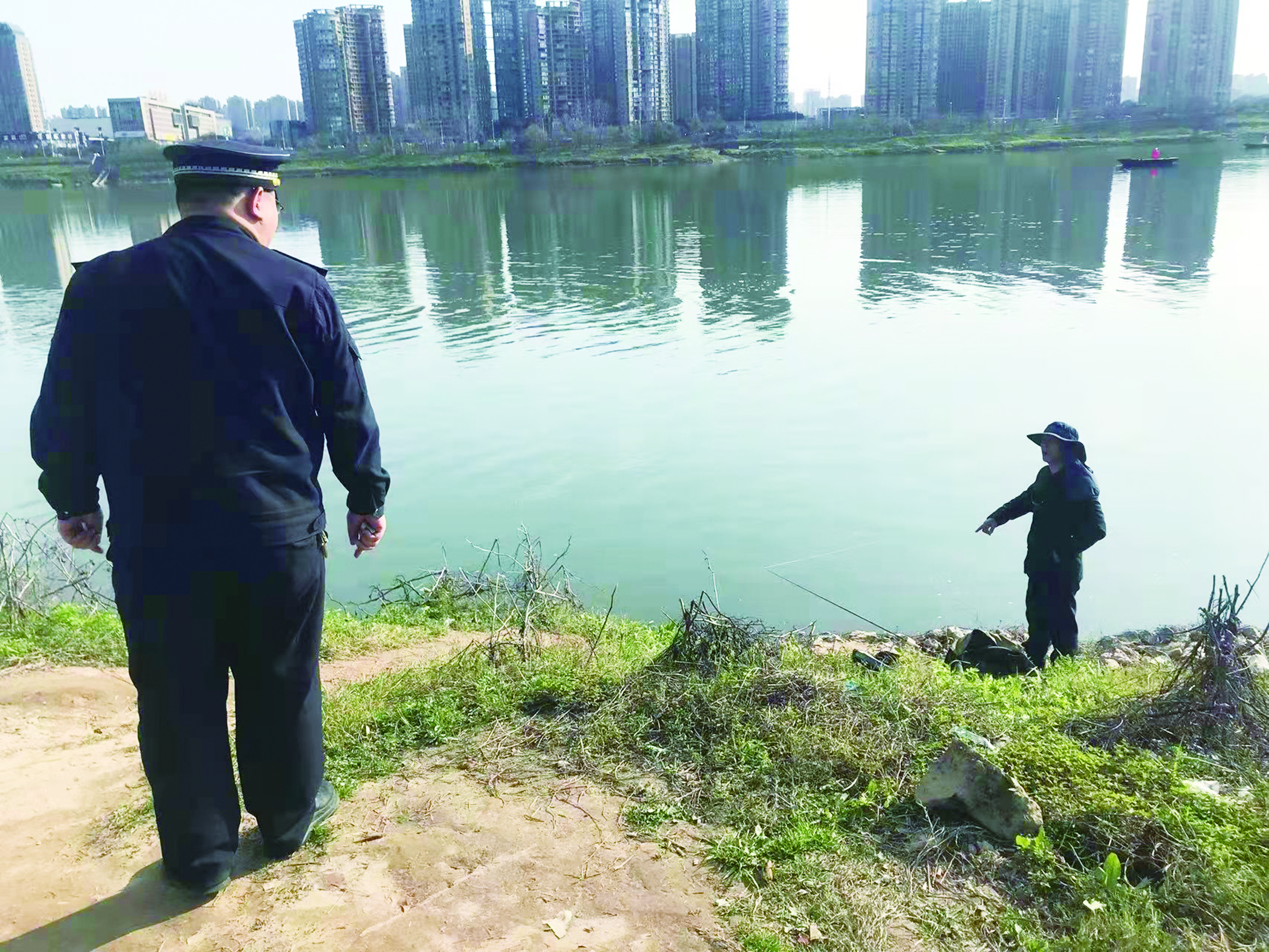 执法人员劝导非法垂钓者。 通讯员/供图