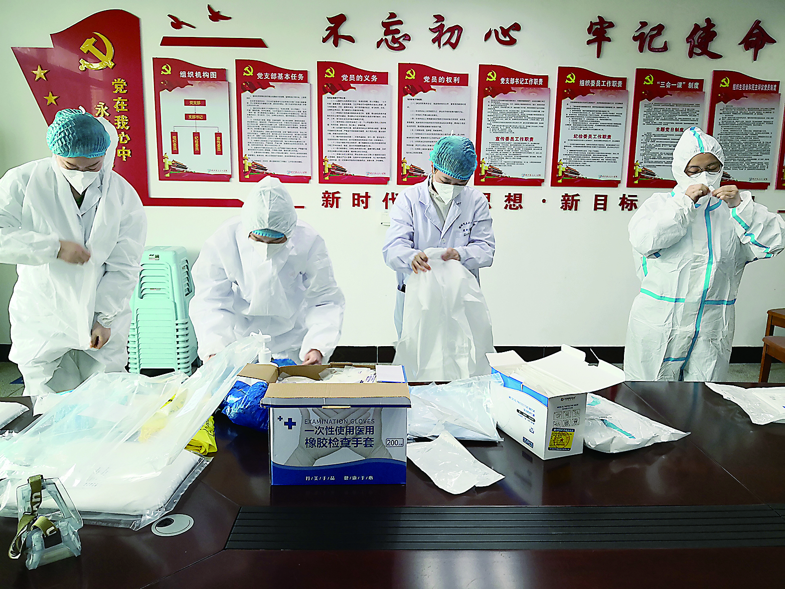 据悉,当天重点考核医护人员穿脱防护服、卫生消毒等是否到位。