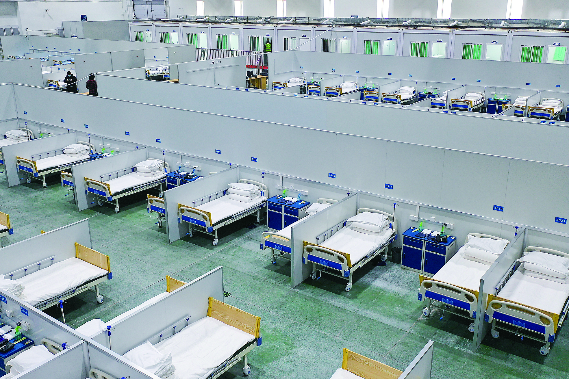 这是3月15日拍摄的长春国际会展中心方舱医院内景(无人机照片)。 新华社发