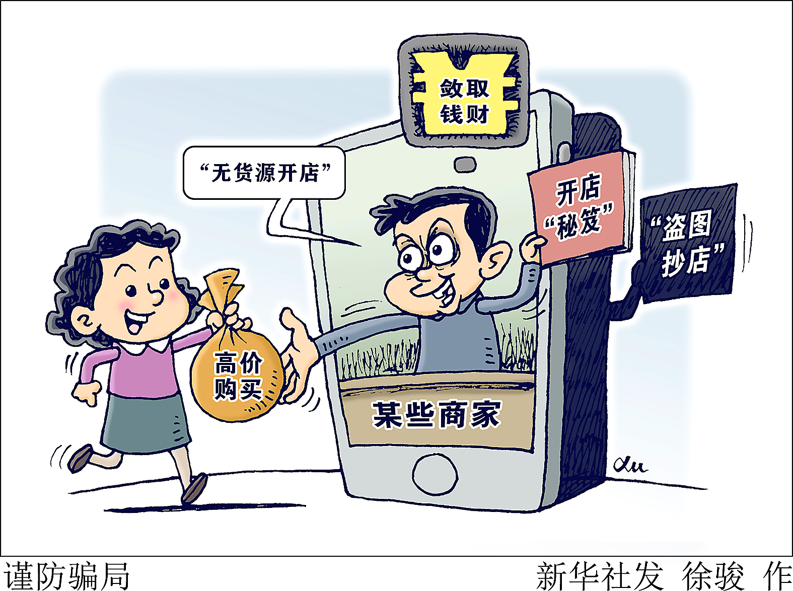 ——开店中:上游货源接单不发货。深圳的王先生在“开店指导”的推介下购买了价值1200元的批发网站货源,本想着接单后直接要求批发商“一件代发”,但批发商迟迟不发货,王先生的网店还被平台扣分。
