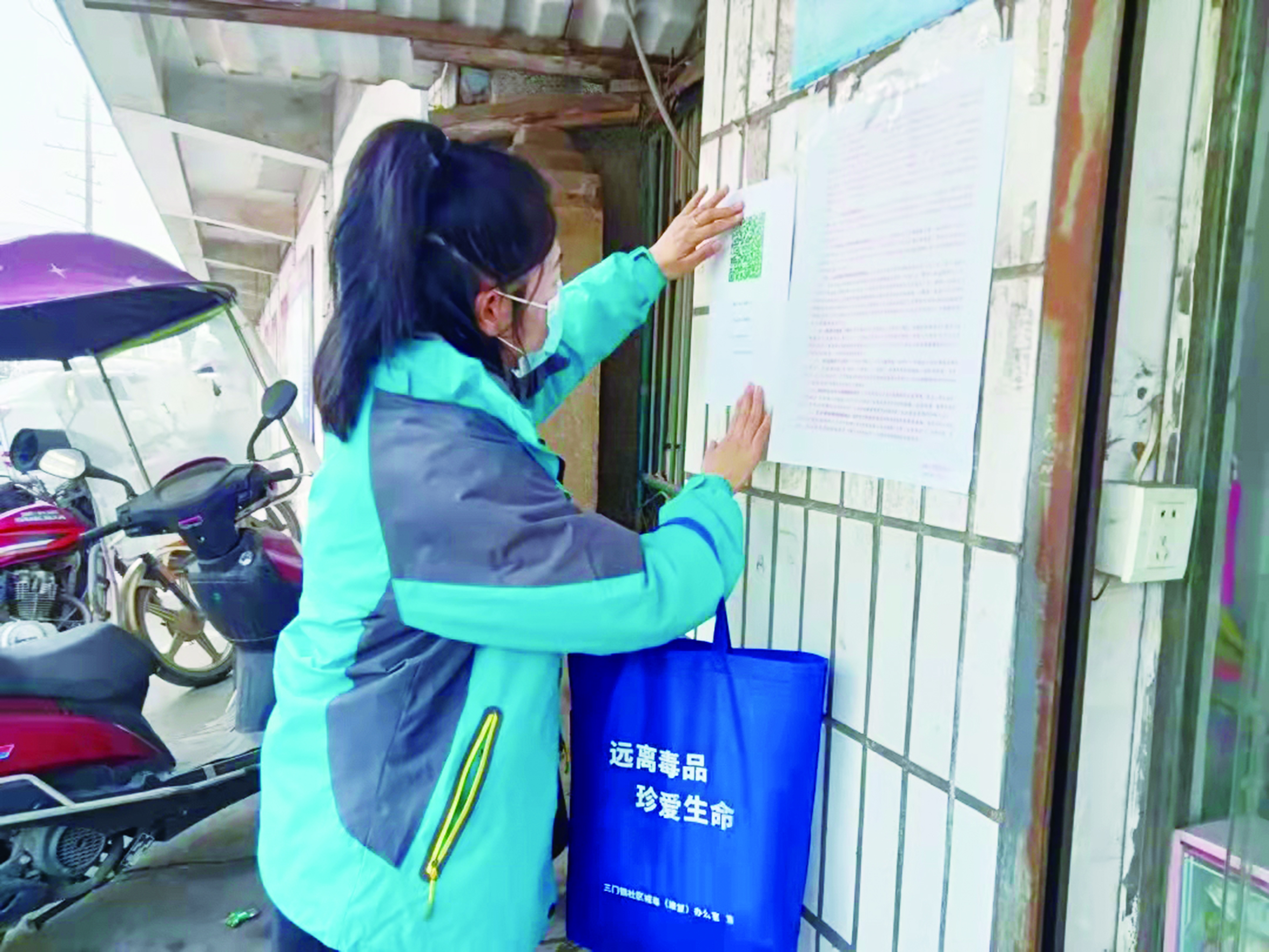 网格员深入辖区街道,张贴防疫“格防码”。 天元区网格化管理服务中心 供图