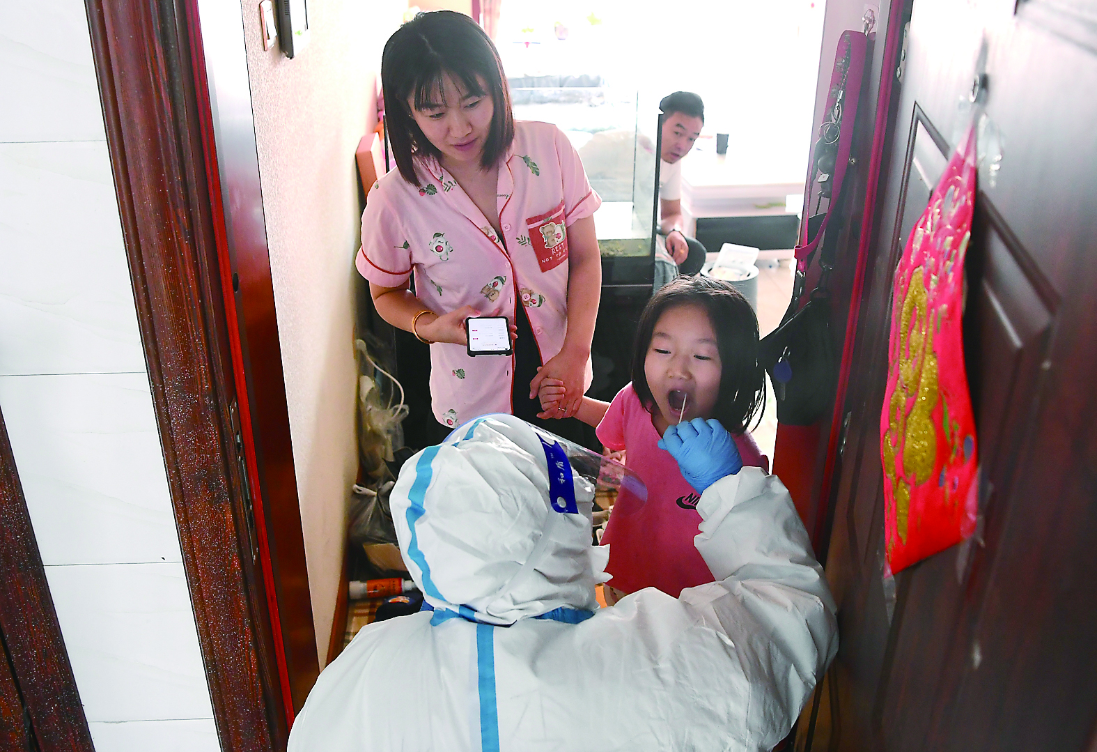 3月18日,吉林省长春市九台区开启新一轮核酸检测。当日,在长春市九台区营城街道东明豪庭小区,工作人员为居民进行核酸检测采样。 新华社发