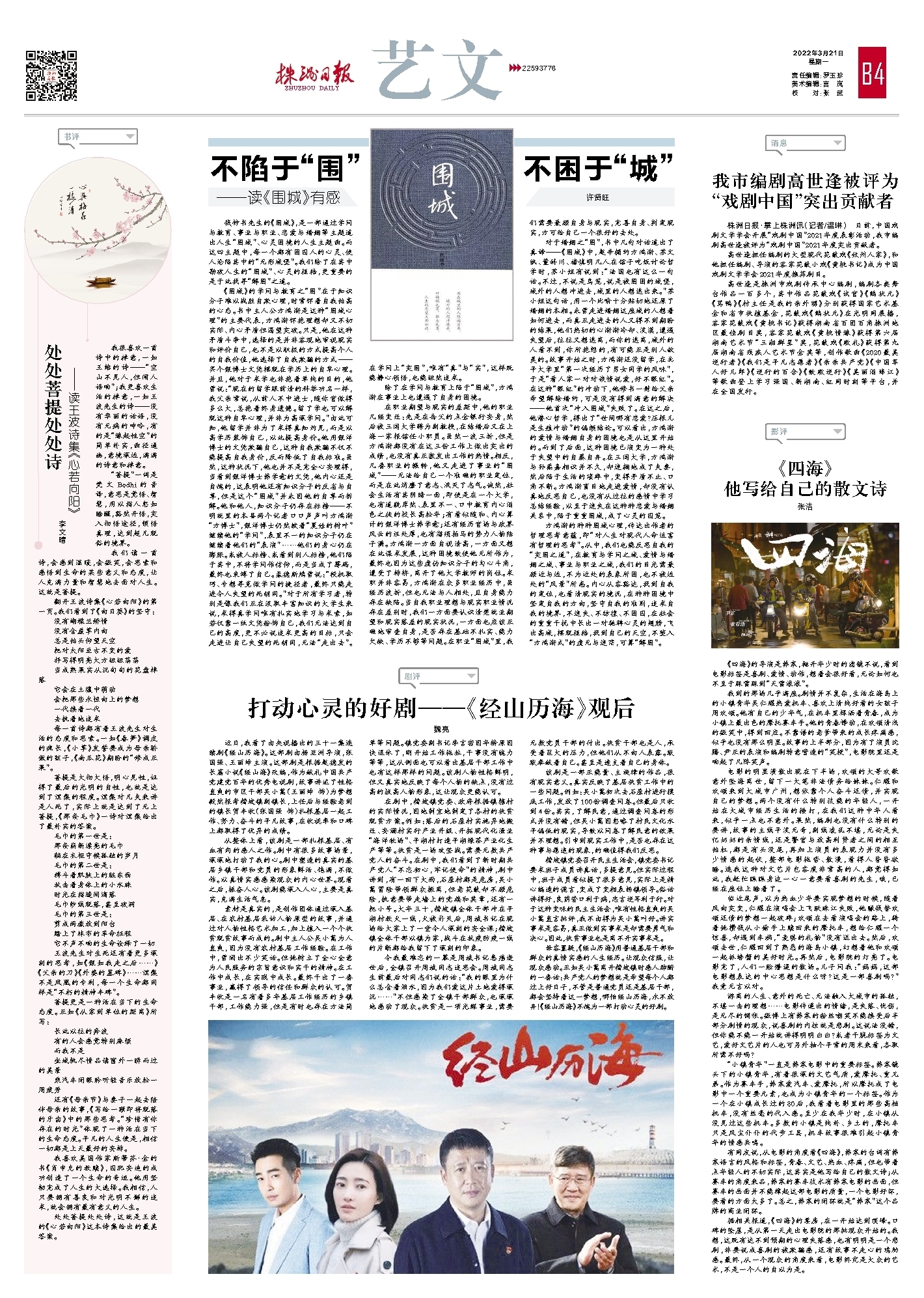 近日,我看了由央视播出的三十一集连续剧《经山历海》。这部剧由杨亚洲导演,张国强、王丽坤主演。这部剧是根据赵德发的长篇小说《经山海》改编,作为献礼中国共产党建党百年的优秀电视剧,故事讲述了性格直爽的市区干部吴小蒿(王丽坤 饰)为梦想毅然报考楷坡镇副镇长,上任后与经验老到的镇长贺丰收(张国强 饰)扎根基层一起工作、努力、奋斗的平凡故事,在收视率和口碑上都取得了优异的成绩。