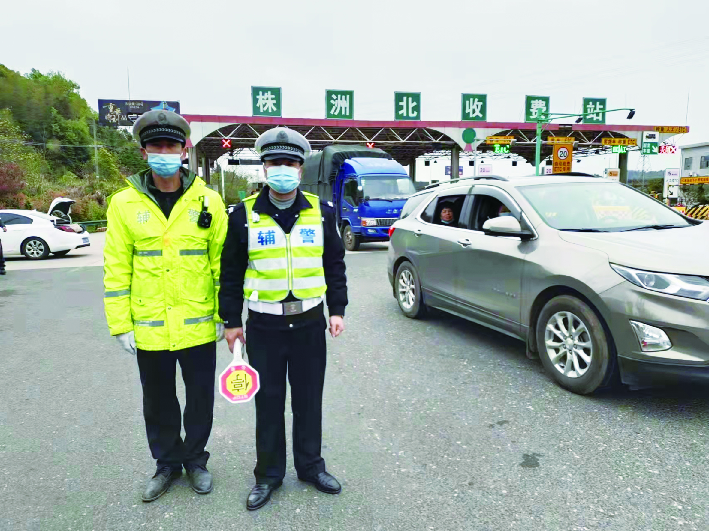 石峰交警在株洲北收费站参与防疫工作。 通讯员供图