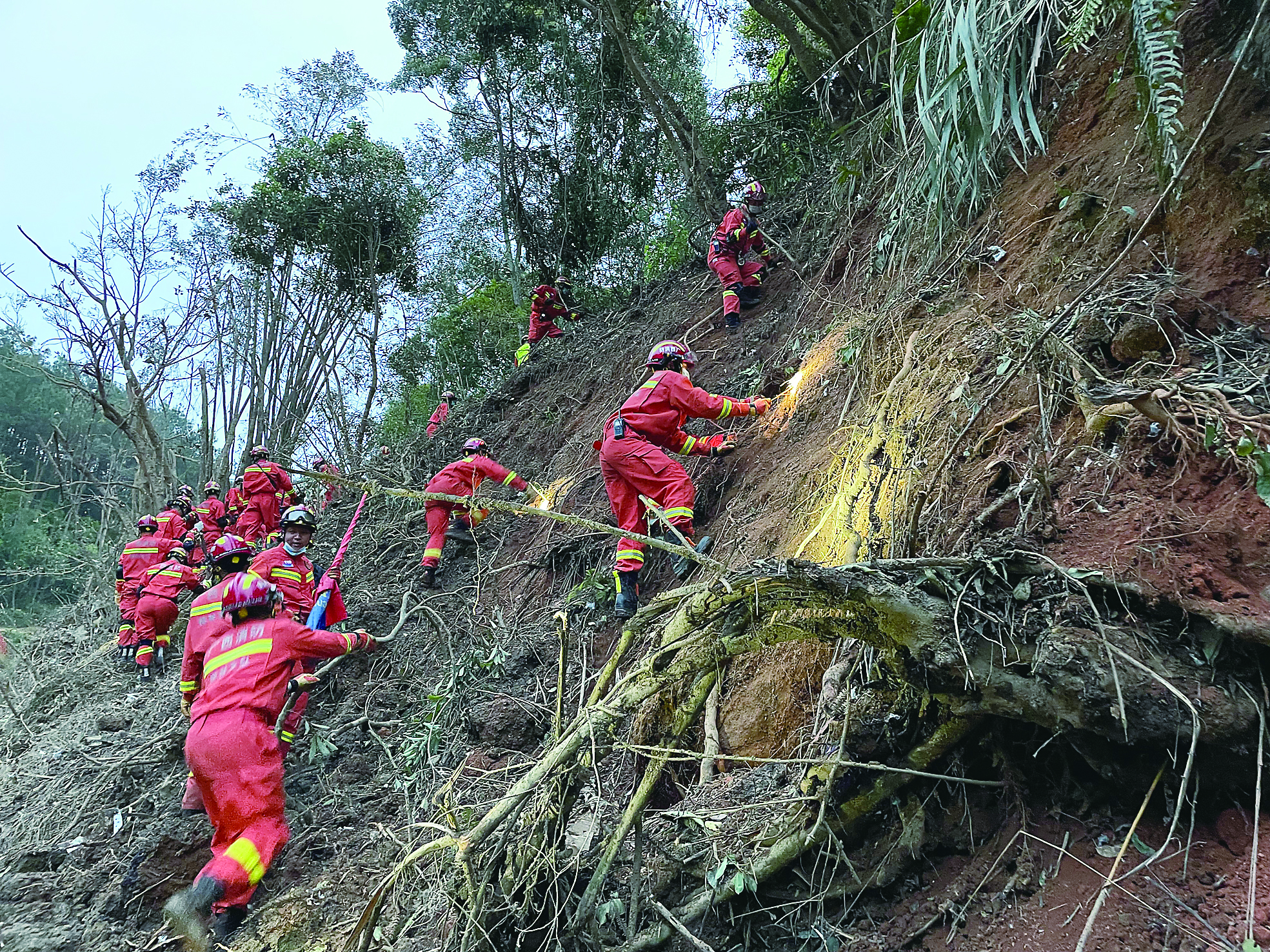 据悉,广西派出的消防救援、武警、公安、民兵等1400多名救援人员,以及云南省森林消防总队驻防广西队伍、广东队伍678名人员,积极有序开展现场救援;协调电力、通信等部门,安排3辆应急电源车,调运6台应急发电机到现场,架设应急通信设备,确保救援现场电力保障有力和基站通信畅通。