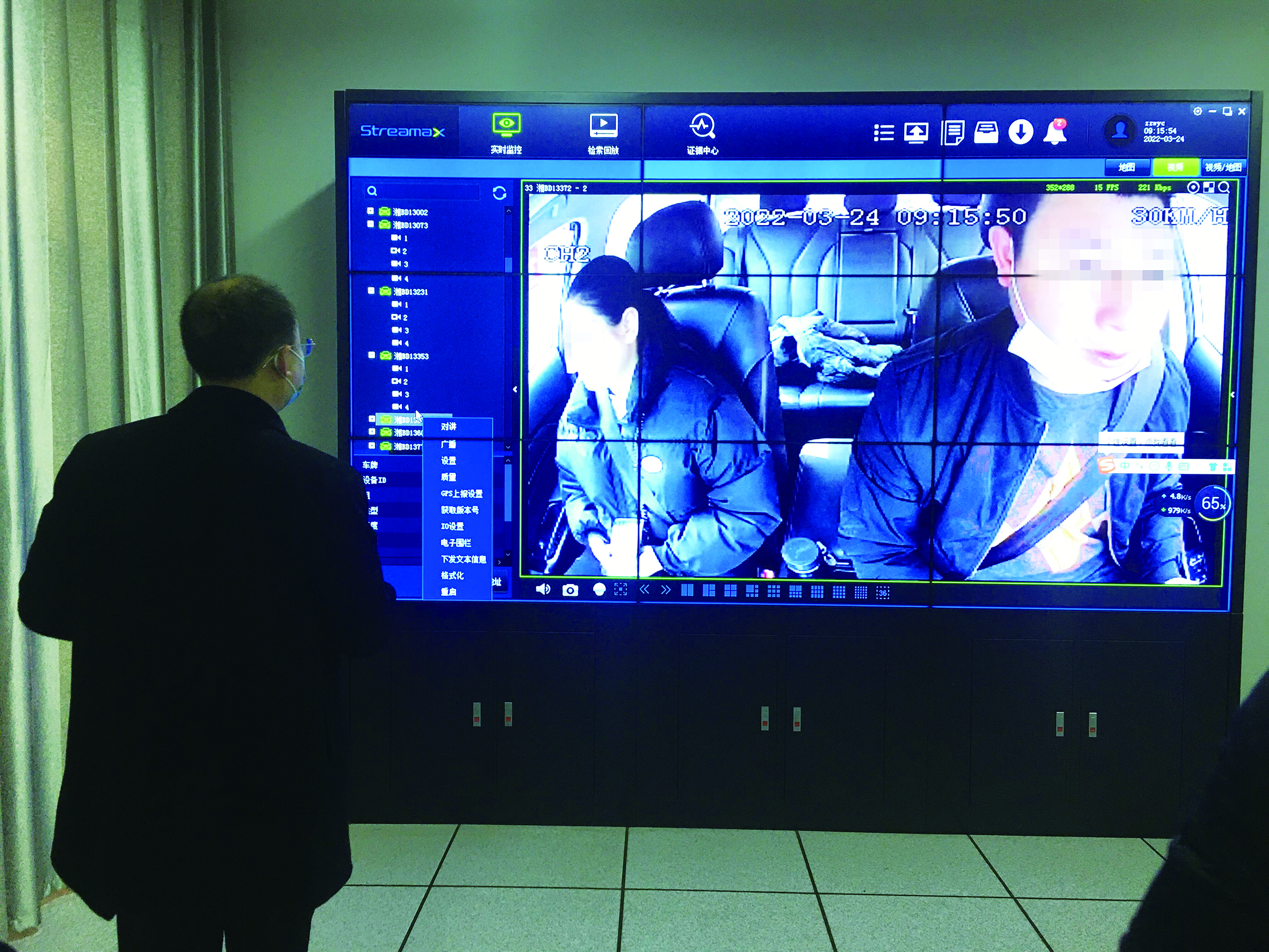 督查人员在湖南澳德信息科技有限公司监控中心通过智能监管平台对部分网约车疫情防控落实情况进行了抽查。
