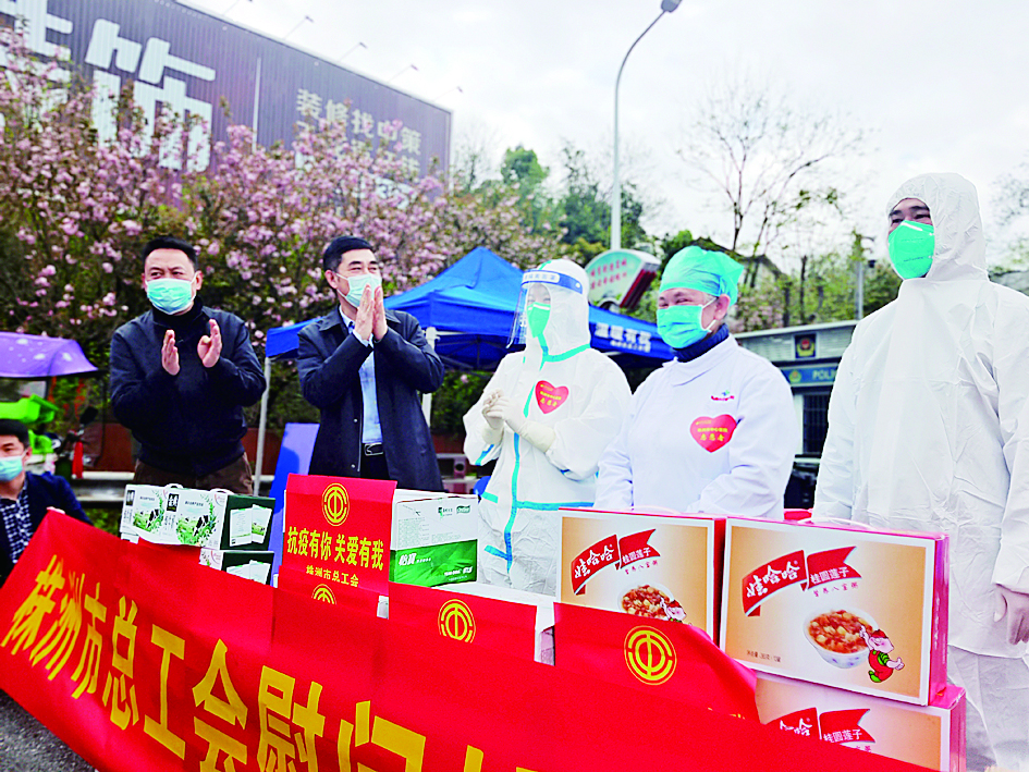 3月25日,市总工会看望慰问一线抗疫人员。 株洲日报·掌上株洲记者/何春林 摄