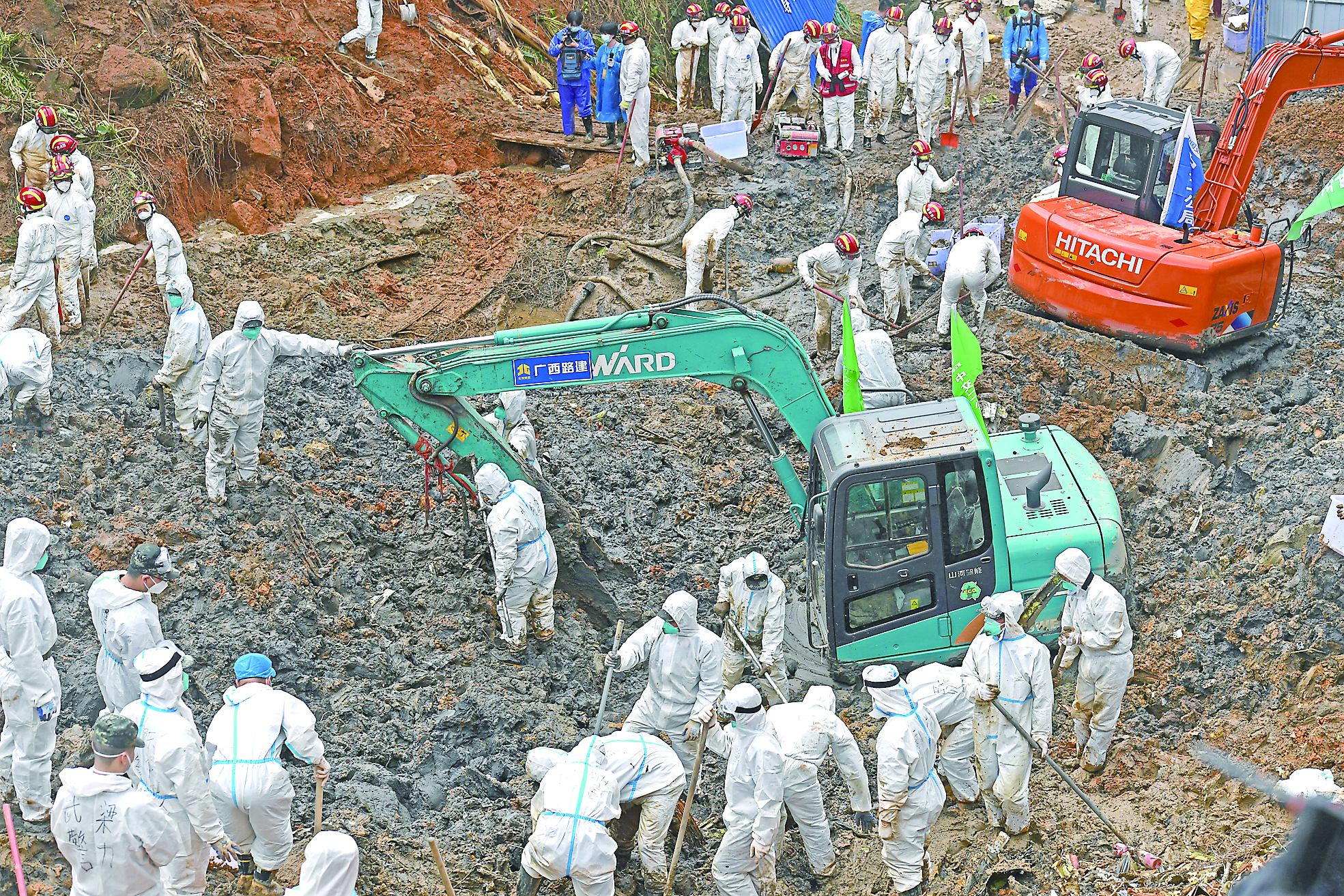 3月25日,搜救人员在事故核心现场进行搜寻工作。新华社记者 周华 摄