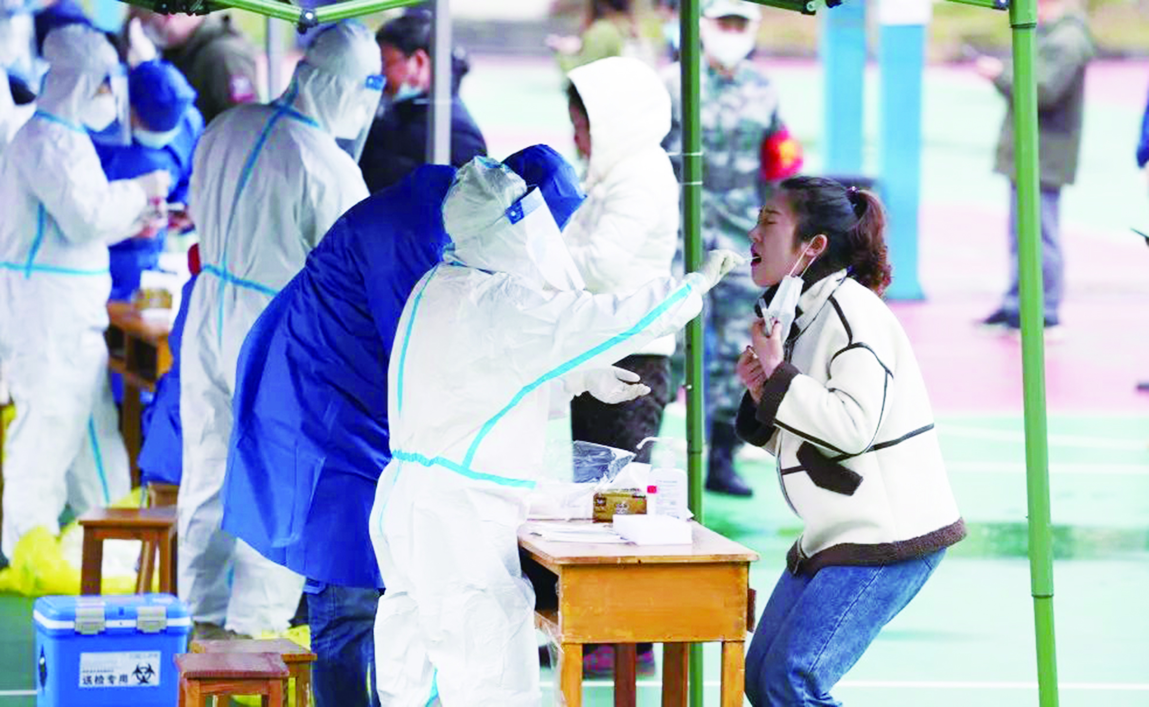 近日,在湖南工业大学临时检测点,师生们正有序地进行核酸检测。面对疫情防控新形势,学校迅速行动,紧急启动全员核酸检测。在校园球场、连楼架空层等地临时设立4个检测点,两天为3万多名师生完成核酸检查。 株洲日报·掌上株洲记者/谭清云 摄