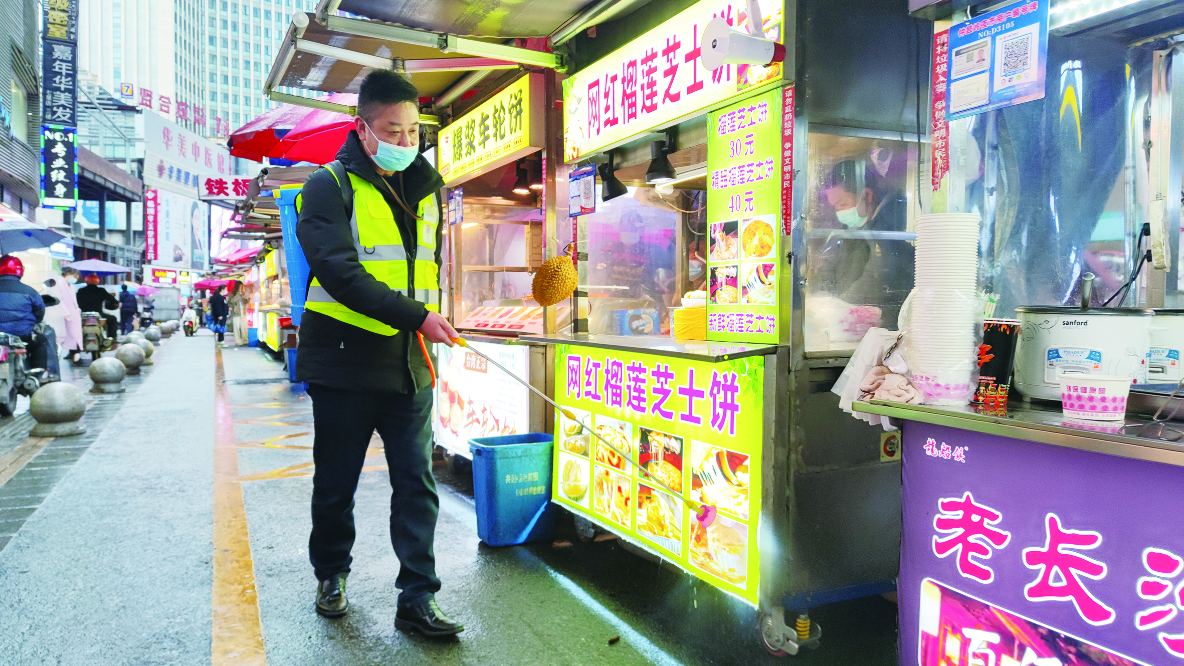 钟鼓岭夜市每天都要经过三次消毒。 株洲日报·掌上株洲记者/杨凌凌 摄