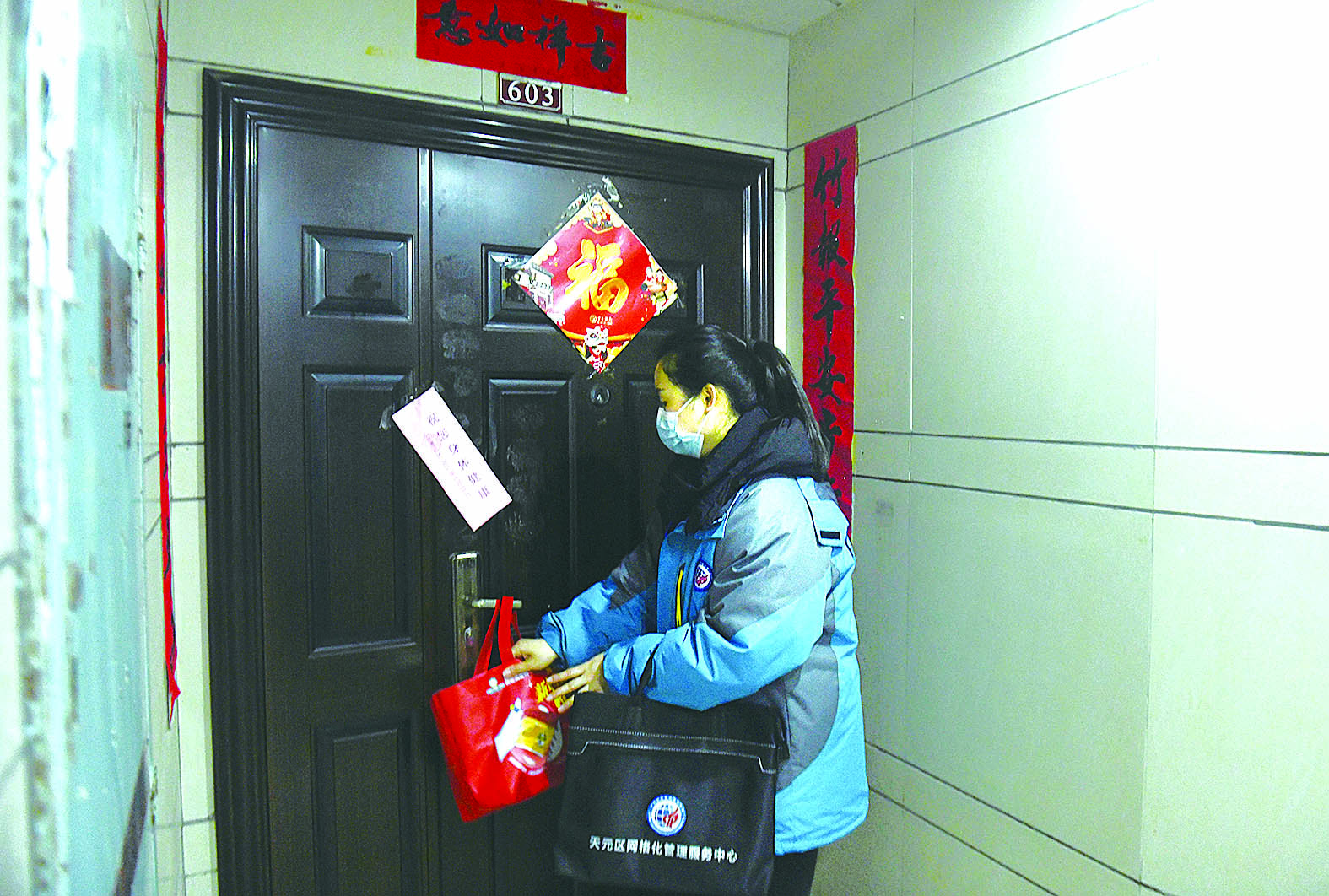 网格员为居家隔离人员送物资