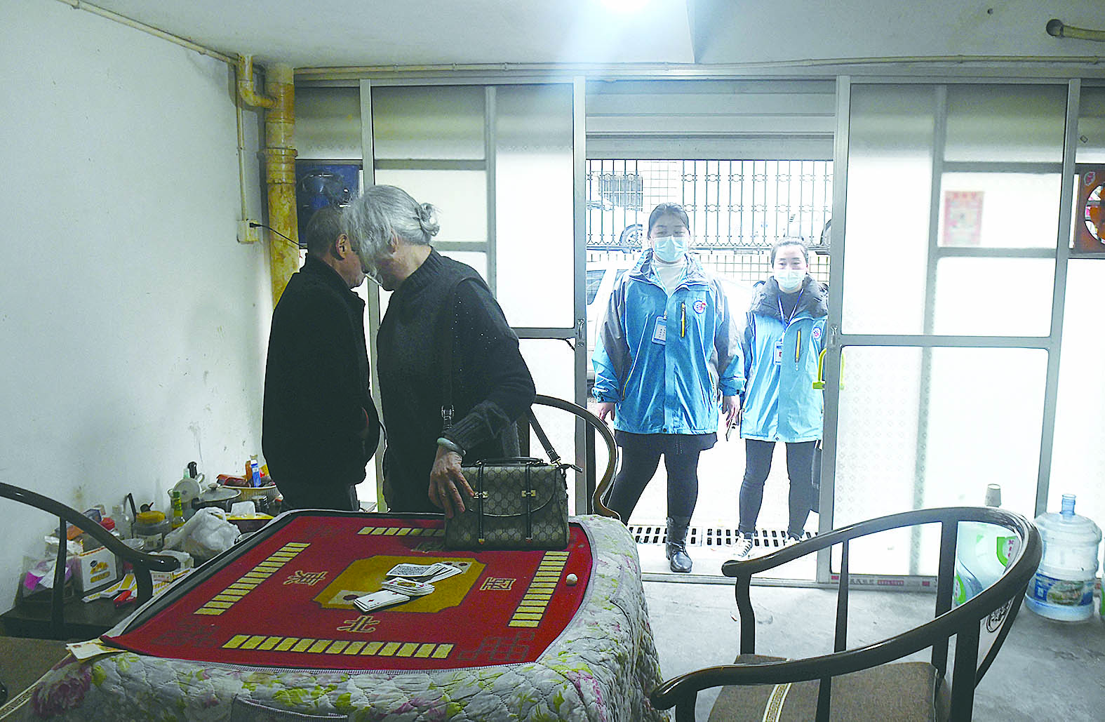 网格员在麻将馆劝导居民