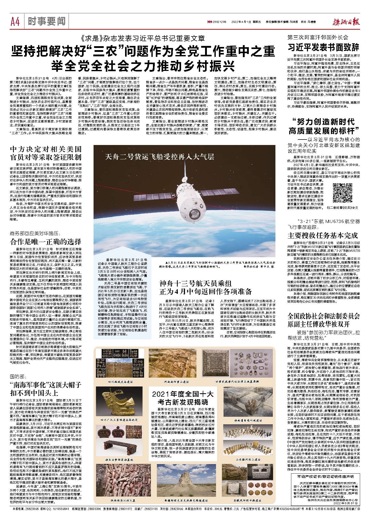 神舟十三号航天员乘组 正为4月中旬返回作各项准备