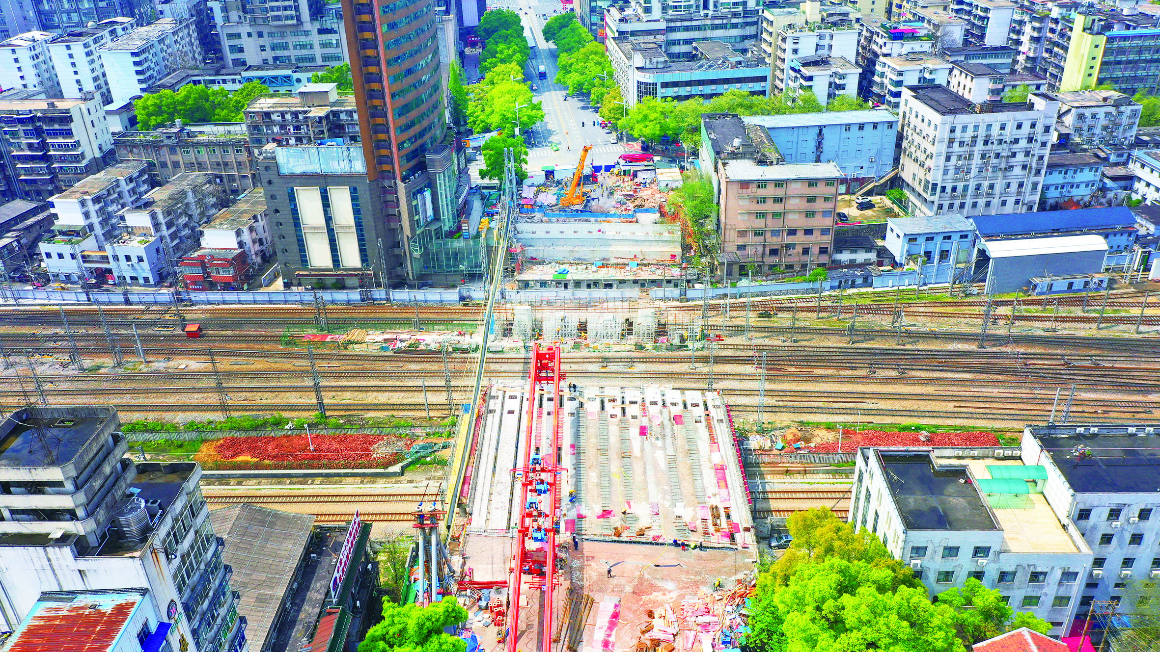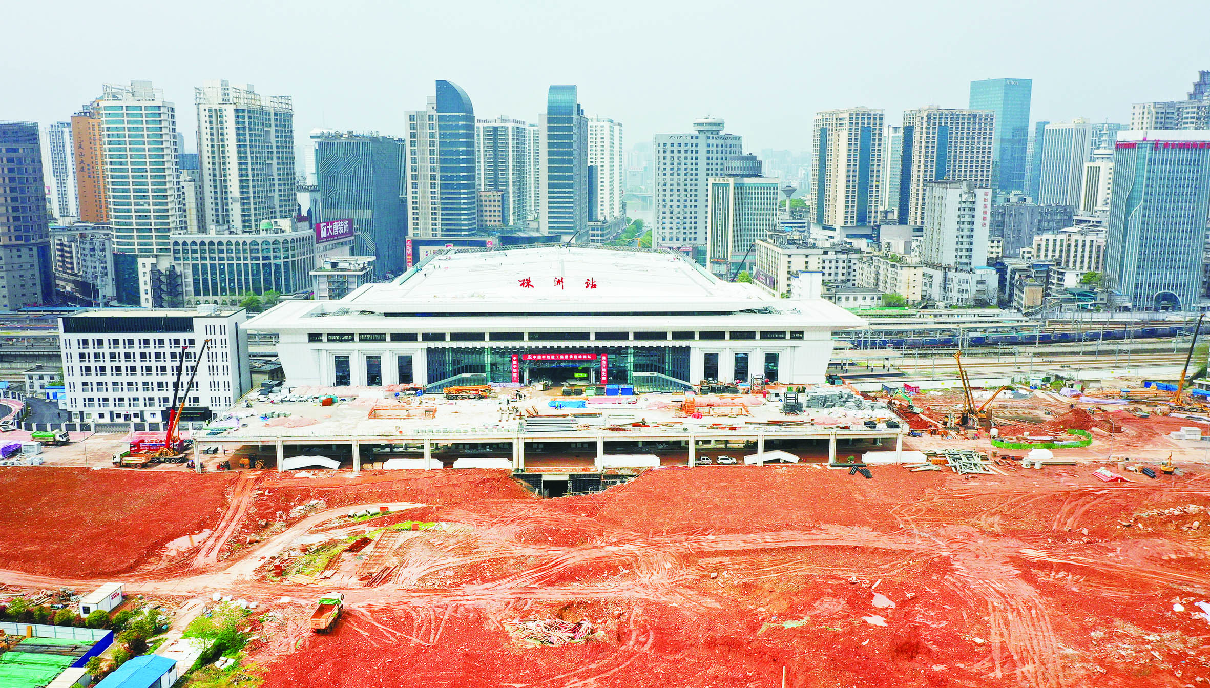 株洲火车站改扩建项目建设现场机器轰鸣、一片繁忙。目前,东站房主体结构已经完工,正在进行室内外装饰装修,未来这里将成为购票厅和部分候车厅;西站房则正在进行第二阶段施工的基坑开挖作业。为保证进度,施工方对出站地道、候车厅两大关键线路采取两班倒作业。根据计划,火车站东站房高架候车厅和2至6站台将于6月30日投入使用。