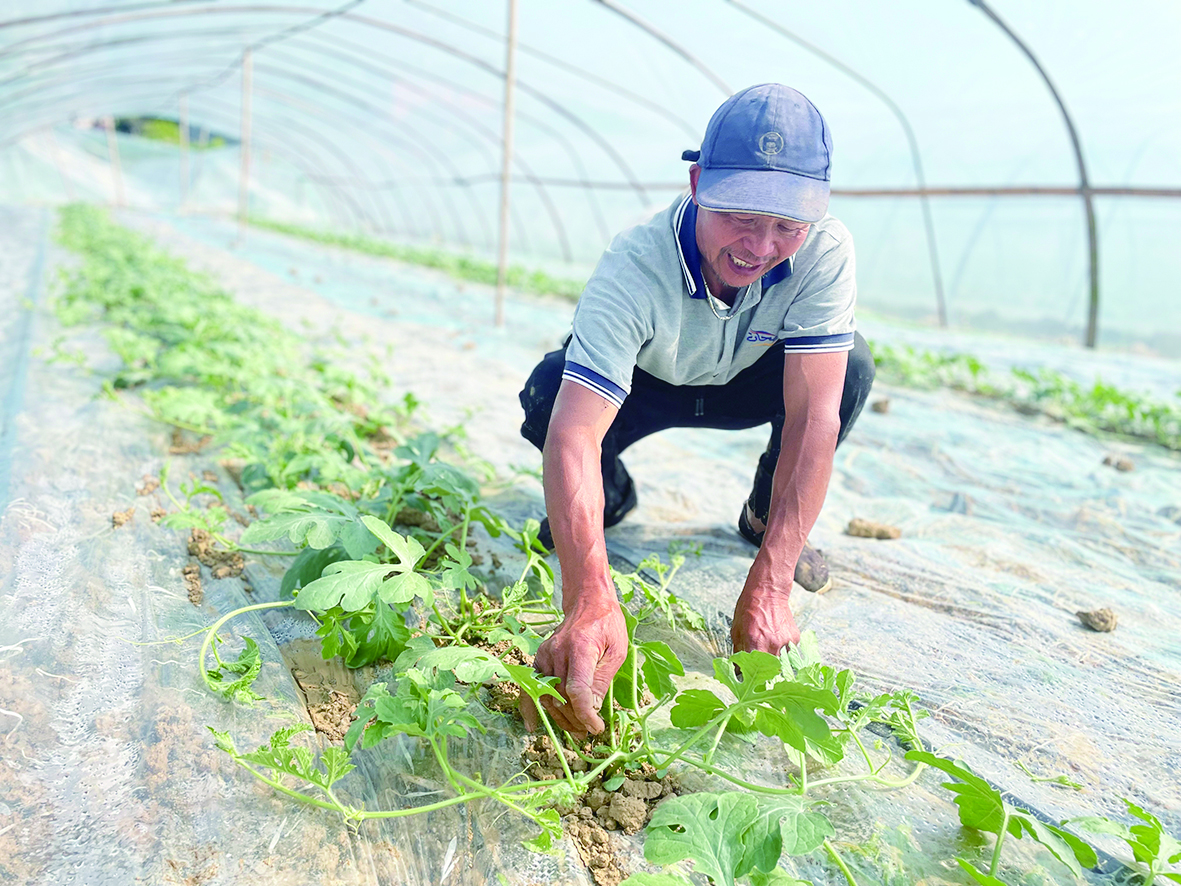 清明前后,种瓜点豆。4月8日,记者在天元区雷打石镇胜塘村看到,连片规模化的西瓜大棚里,满棚的西瓜苗绿意盎然、长势喜人。西瓜种植户徐仁义,一大清早便在大棚里清理杂草、修剪枝蔓,忙个不停。“这里共有100个大棚,里面栽了2万株西瓜苗,端午节西瓜就成熟了。”