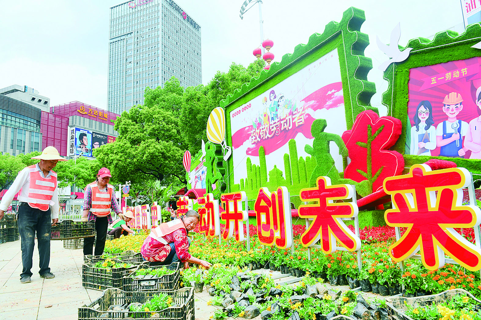 “五一劳动节”临近,园林绿化工作人员忙着用鲜花扮靓城市,营造节日氛围。