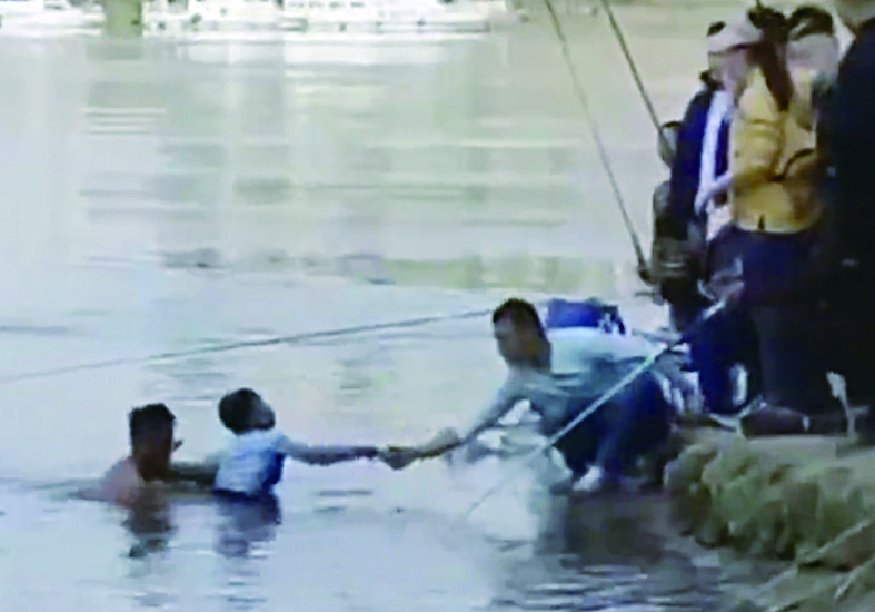 男孩被救上岸。