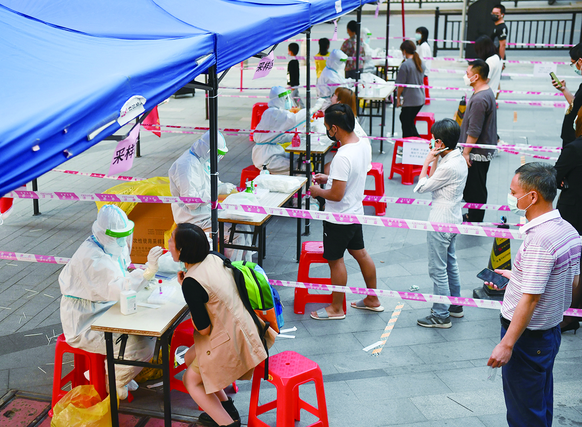 4月9日,上海松江区医务人员为居民进行核酸采样。新华社记者 张建松 摄