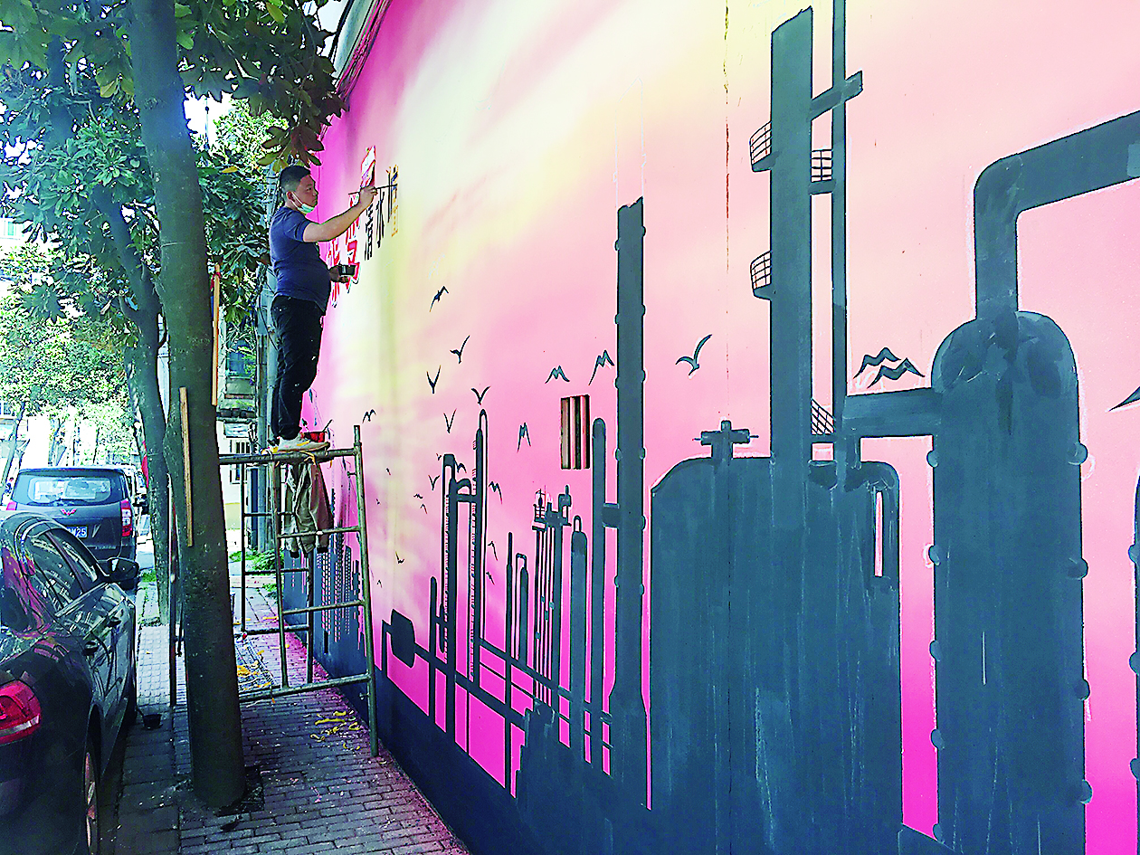 4月11日,记者在石峰区清水塘街道井墈社区看到,居民楼外墙新添了7幅墙绘作品。这些作品以工厂、清水塘老街等为主题,呈现清水塘工业区昔日面貌。