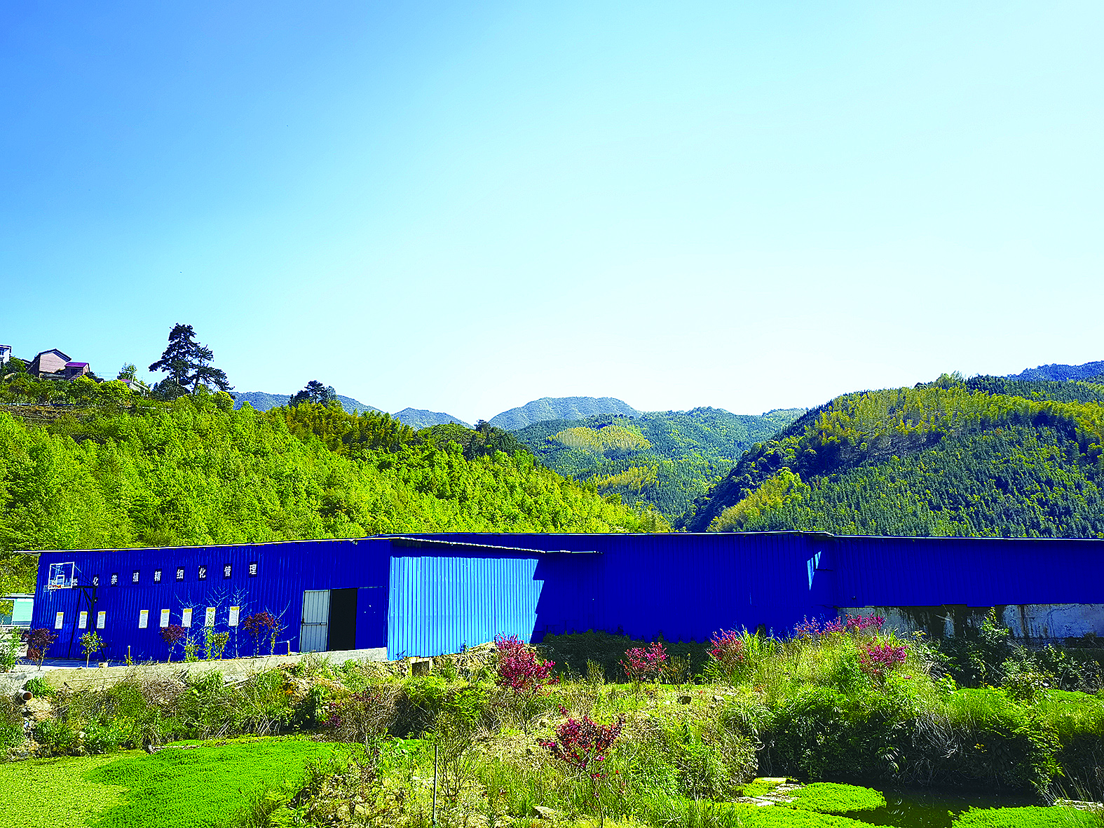 4月8日,碧空如洗,在位于湘赣边罗霄山脉西麓的茶陵县秩堂镇锡田村大湖组,记者沿着山间的村道蜿蜒向上,放眼四望,满目青翠。行至半山腰,伴随着越来越大的潺潺溪水声,一排排蓝色彩钢棚跃入眼帘,与青山绿水相映成辉。
