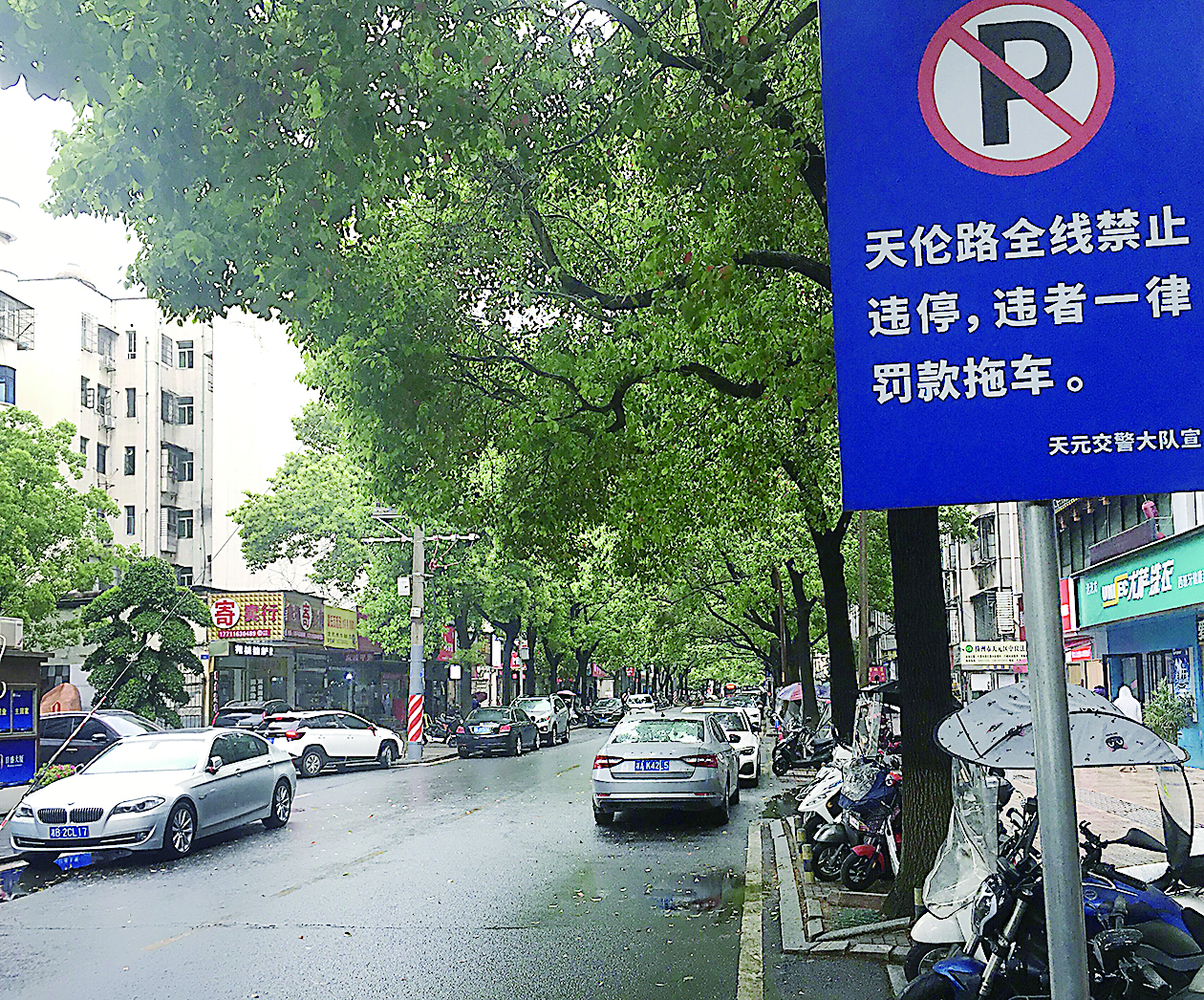 天伦路上,违停车辆“成群结队”。 株洲日报·掌上株洲记者/刘平 摄