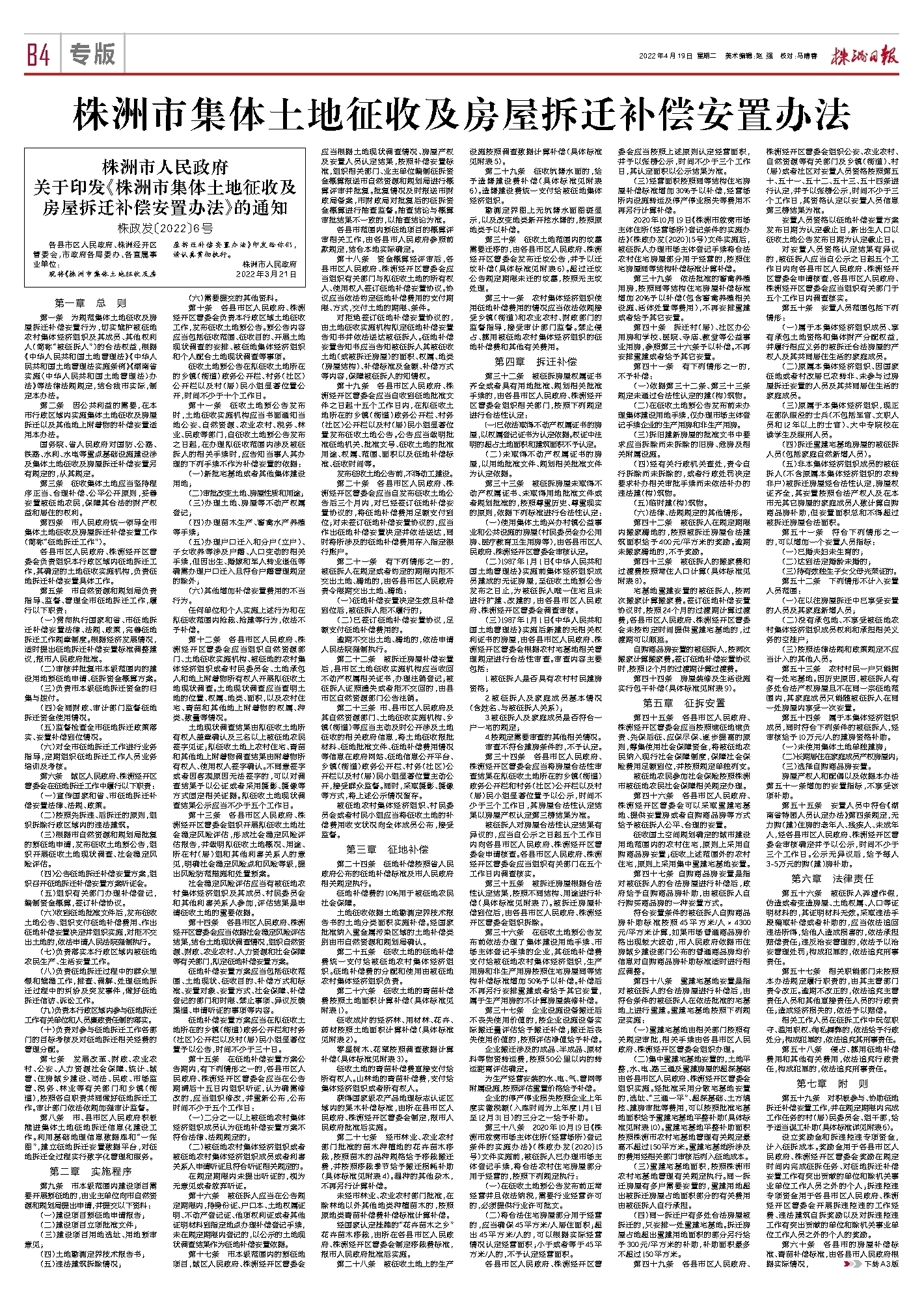 株洲市人民政府 关于印发《株洲市集体土地征收及 房屋拆迁补偿安置办法》的通知