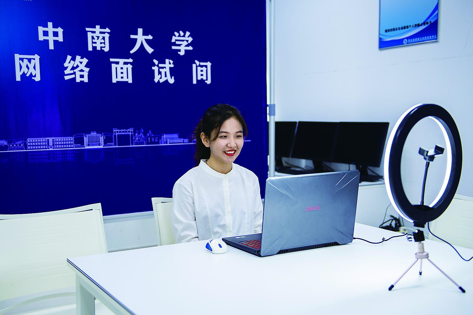 4月14日,在湖南长沙中南大学就业指导中心,学生通过网络进行求职面试。新华社发