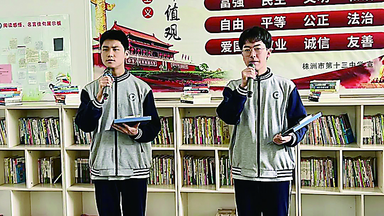 现场,学生代表分享了近期阅读的文章和感受,传媒生学子用浑厚的声音传递出了文字的力量和时代强音。读懂书,也要读懂父母和老师的“深爱”。“希望大家能够理解来自父母和老师的爱。这份爱,会永远陪着我们读书、工作、生活。”当天,市十三中校长孟祥忠在校园里拿起了吉他,弹唱歌曲《只要你过得比我好》,为校园师生传递正能量。
