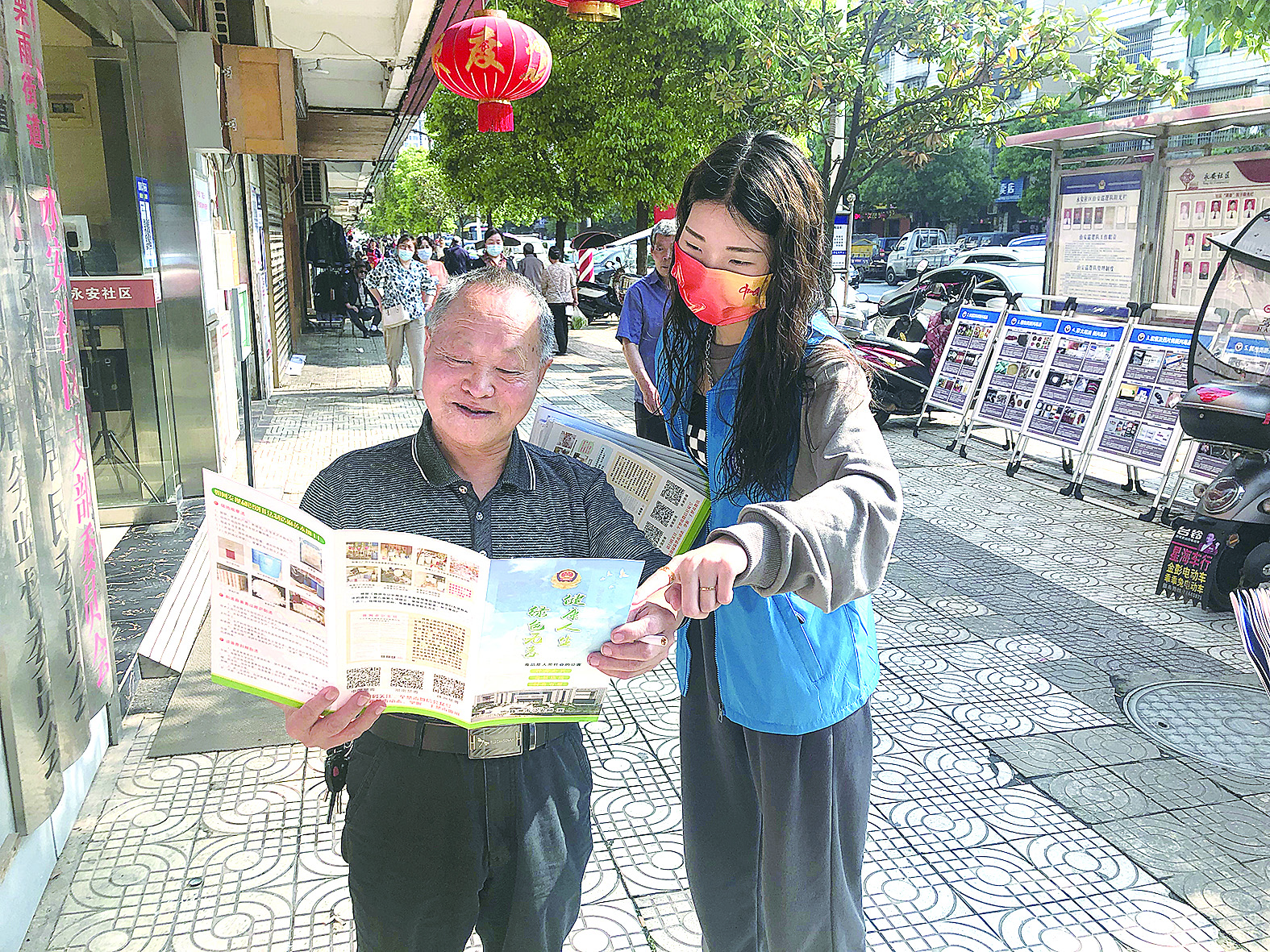 网格员结合创文上街进行反电信诈骗、禁毒知识宣传。天元区网格化管理服务中心 供图