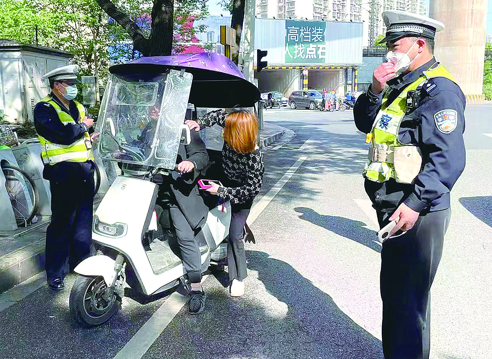 芦淞交警大队在街头开展“一盔一带”专项整治行动。 株洲日报·掌上株洲通讯员/卜妍 供图