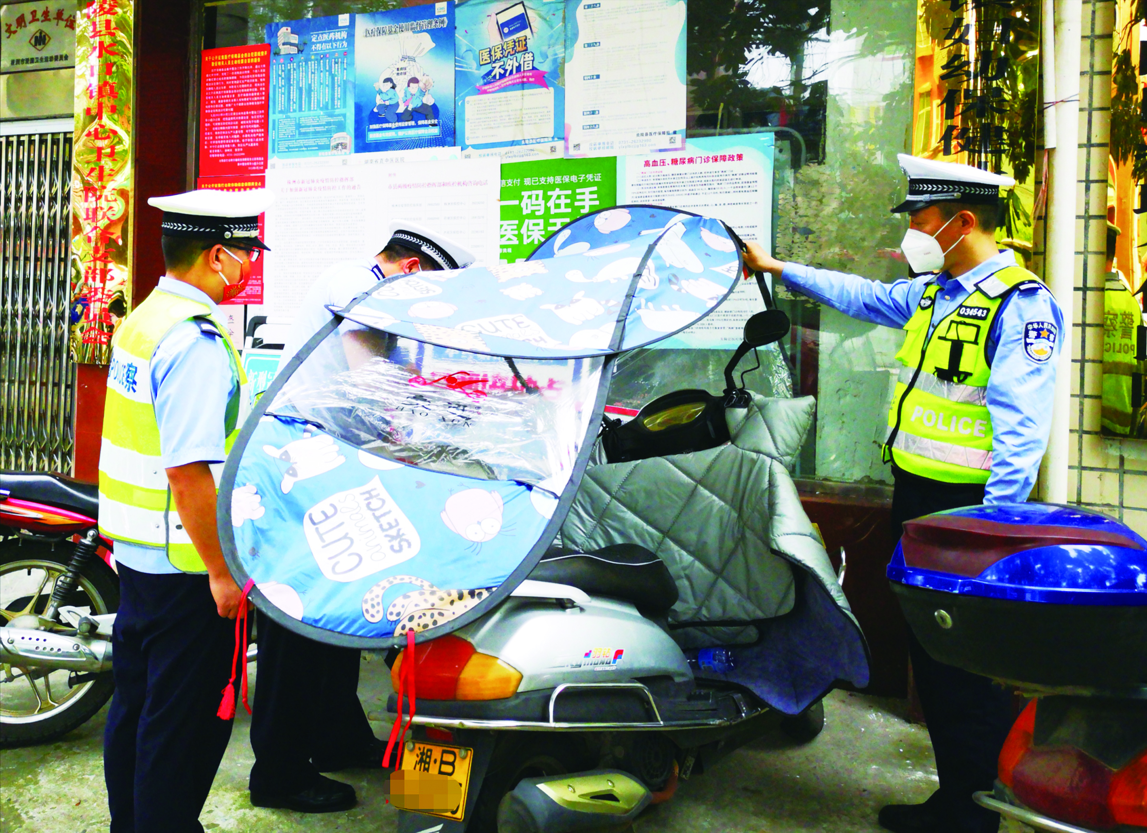 4月25日,炎陵县交通问题顽瘴痼疾整治办组织公安交警、农业农村、交通运输等部门工作人员,来到水口等乡镇,对非法安装遮阳伞的摩托车、电动车车主进行耐心教育,讲解其危害性,并对遮阳伞进行拆除和收缴。 株洲日报·掌上株洲通讯员/何华 摄