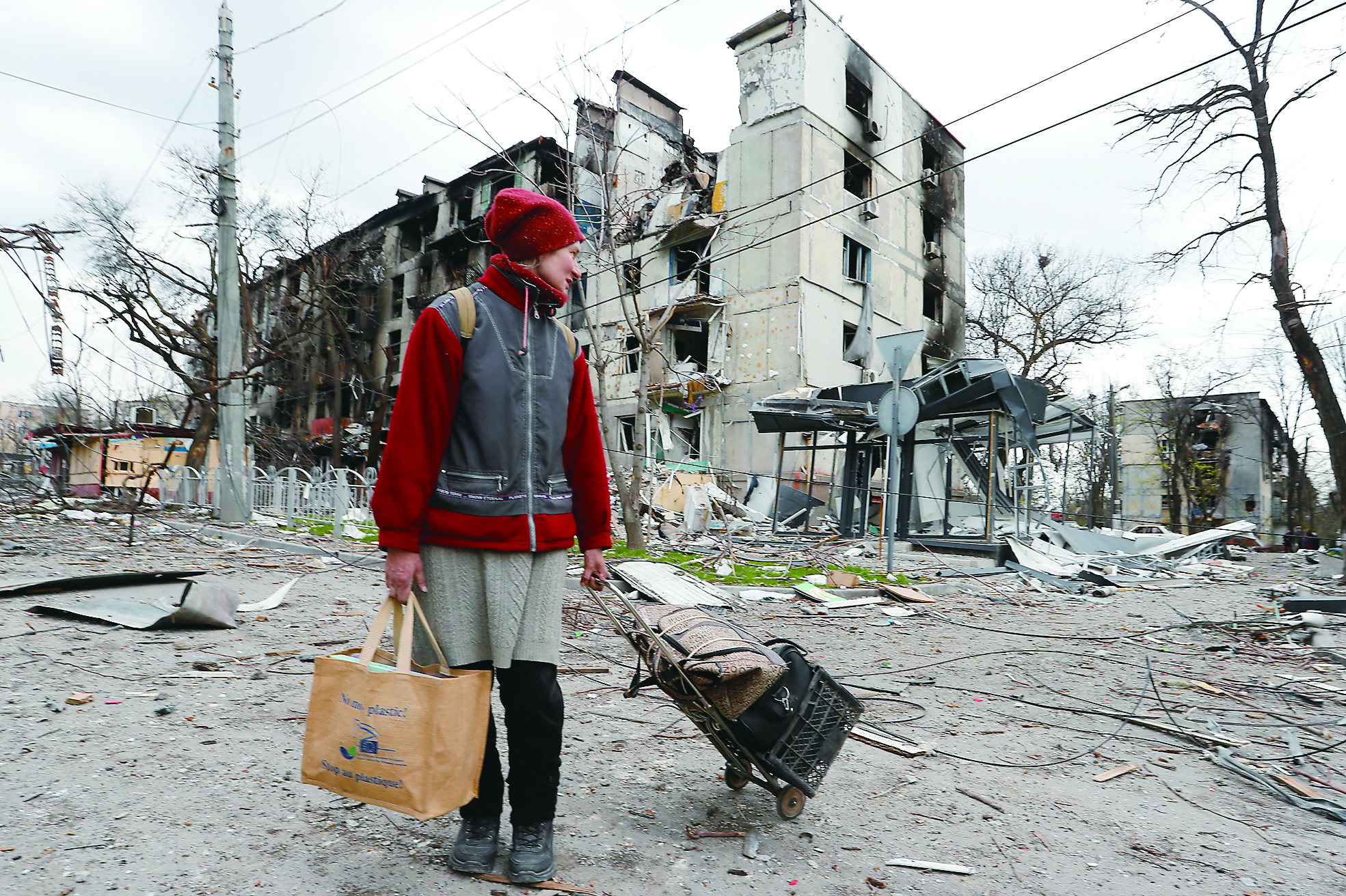 近日,在马里乌波尔,当地居民走过被损坏的建筑。 新华社发