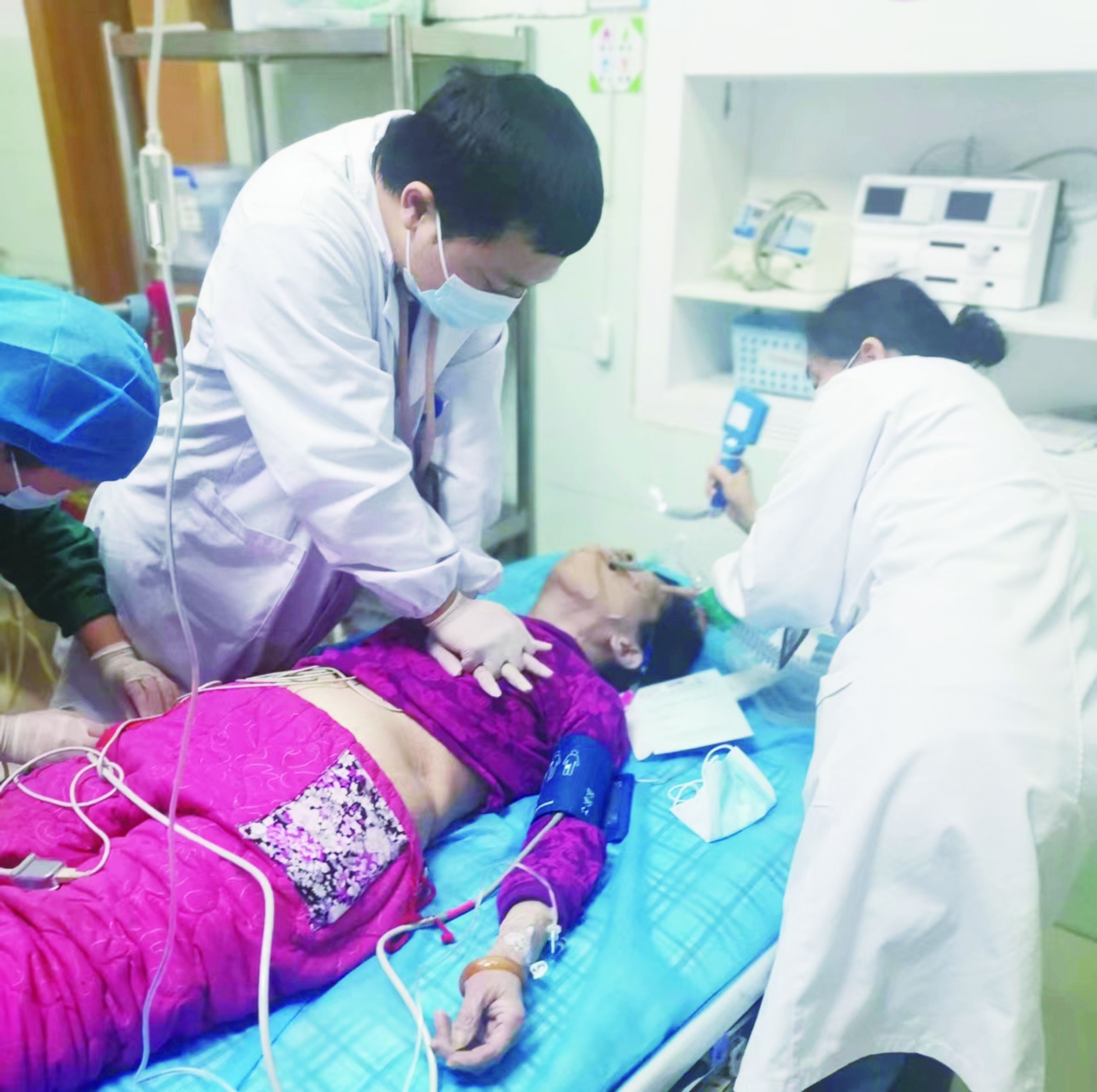 当天上午9钟左右,袁姓老人因身体不适打算去医院检查,没想到在路上突然晕倒,被家属送到市人民医院急诊科。到达时老人已意识丧失,心跳呼吸已停止,面色惨白,双下肢浮肿严重。