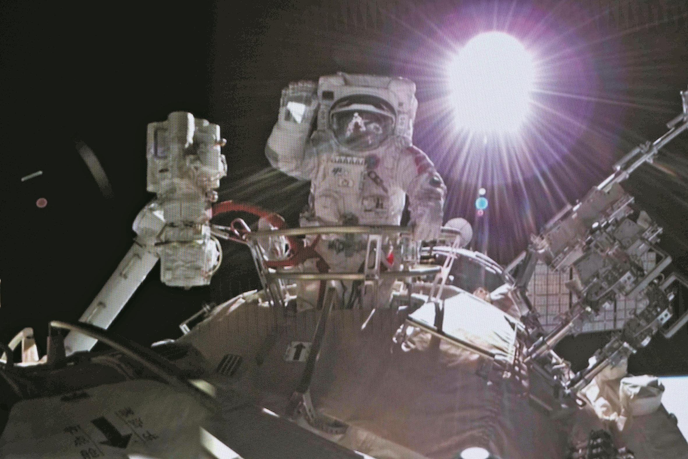 神舟十三号航天员翟志刚出舱画面。
