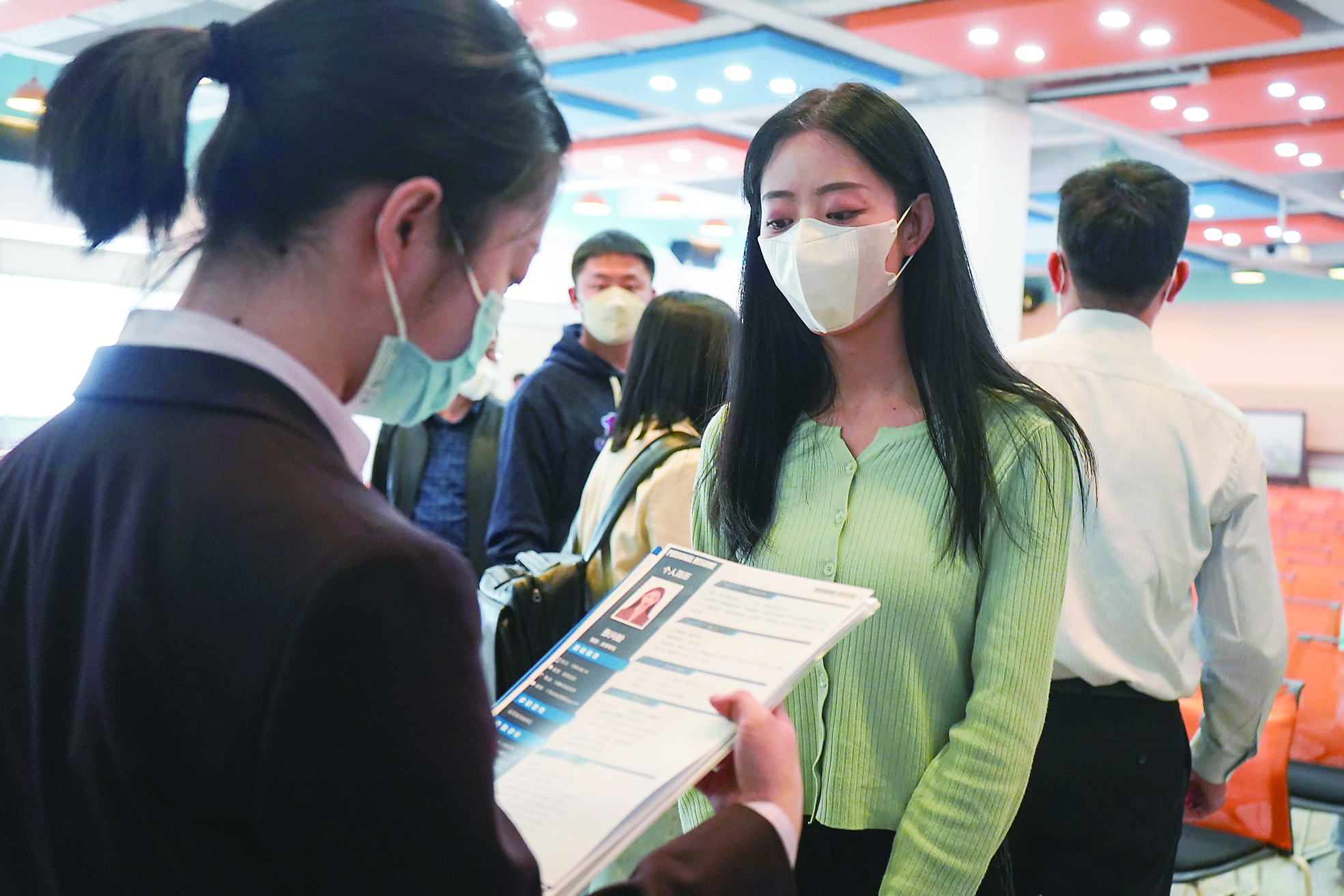 近日,西北师范大学举行线下专场招聘会,该校应届毕业生在招聘会现场投简历。新华社记者 郎兵兵 摄