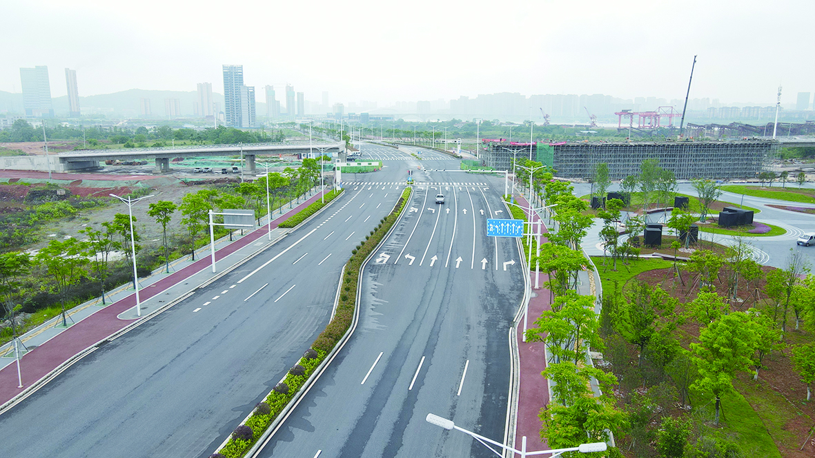 “当时这里还是一片山包和水洼地,要开挖和回填的体量巨大,道路施工环境很差。”谭文勇介绍,由于雨季长,施工队只得“看天做事”,晴天大干、小雨小干,为赶工期,加班是常态,吃住在项目。