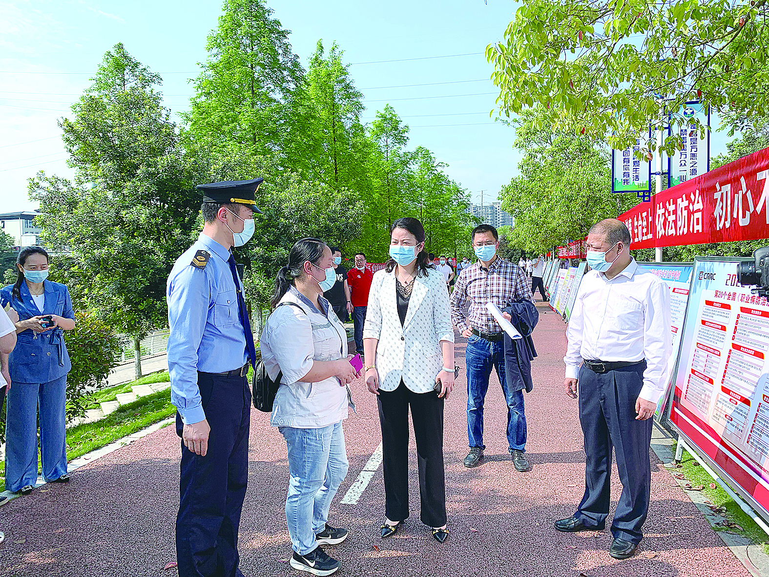 中国疾病预防控制中心职业卫生与中毒控制所所长孙新(右一)一行在我市指导健康企业建设工作