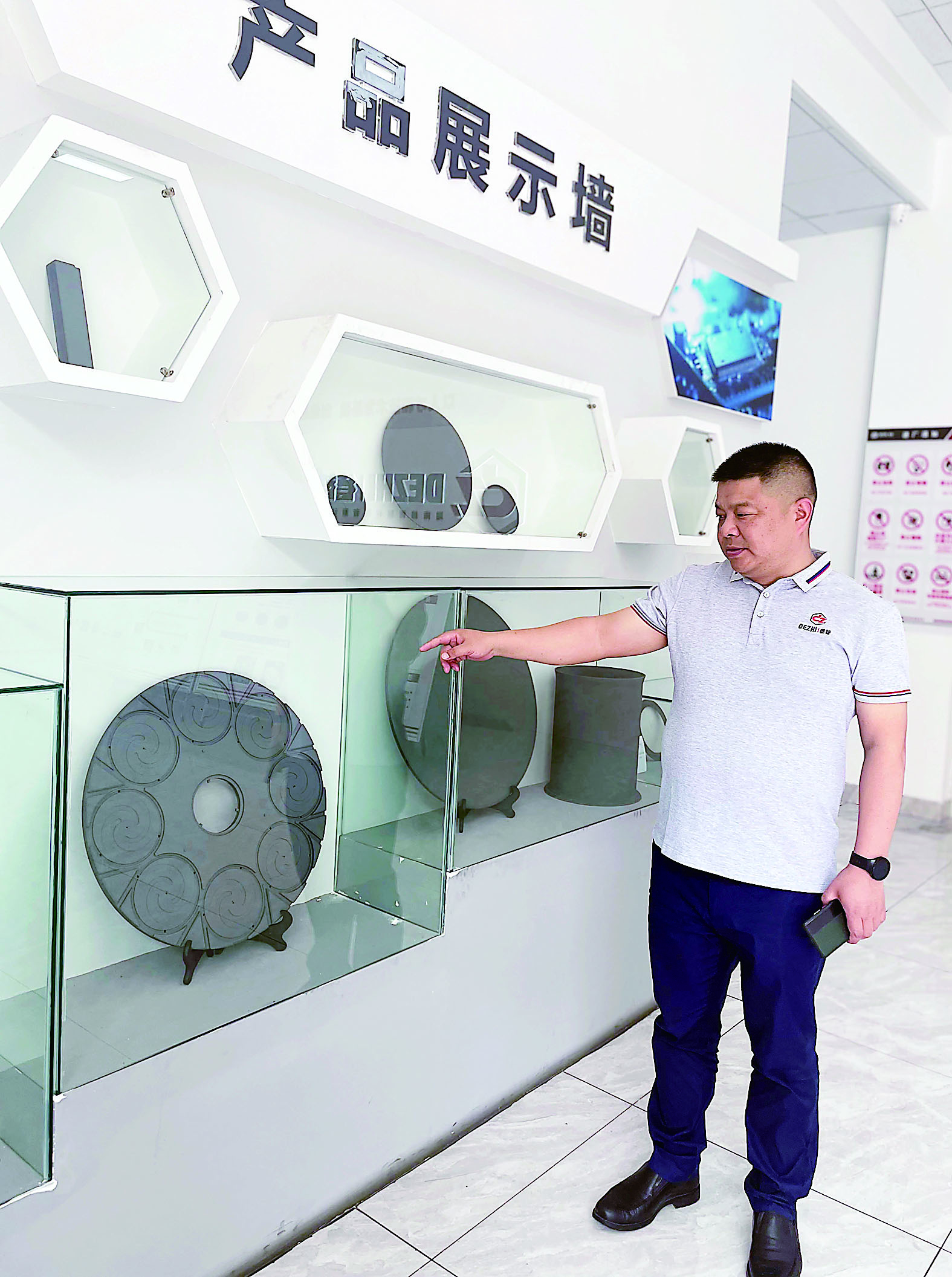德智新材董事长柴攀在给记者介绍公司产品。株洲日报·掌上株洲记者/杨如 摄
