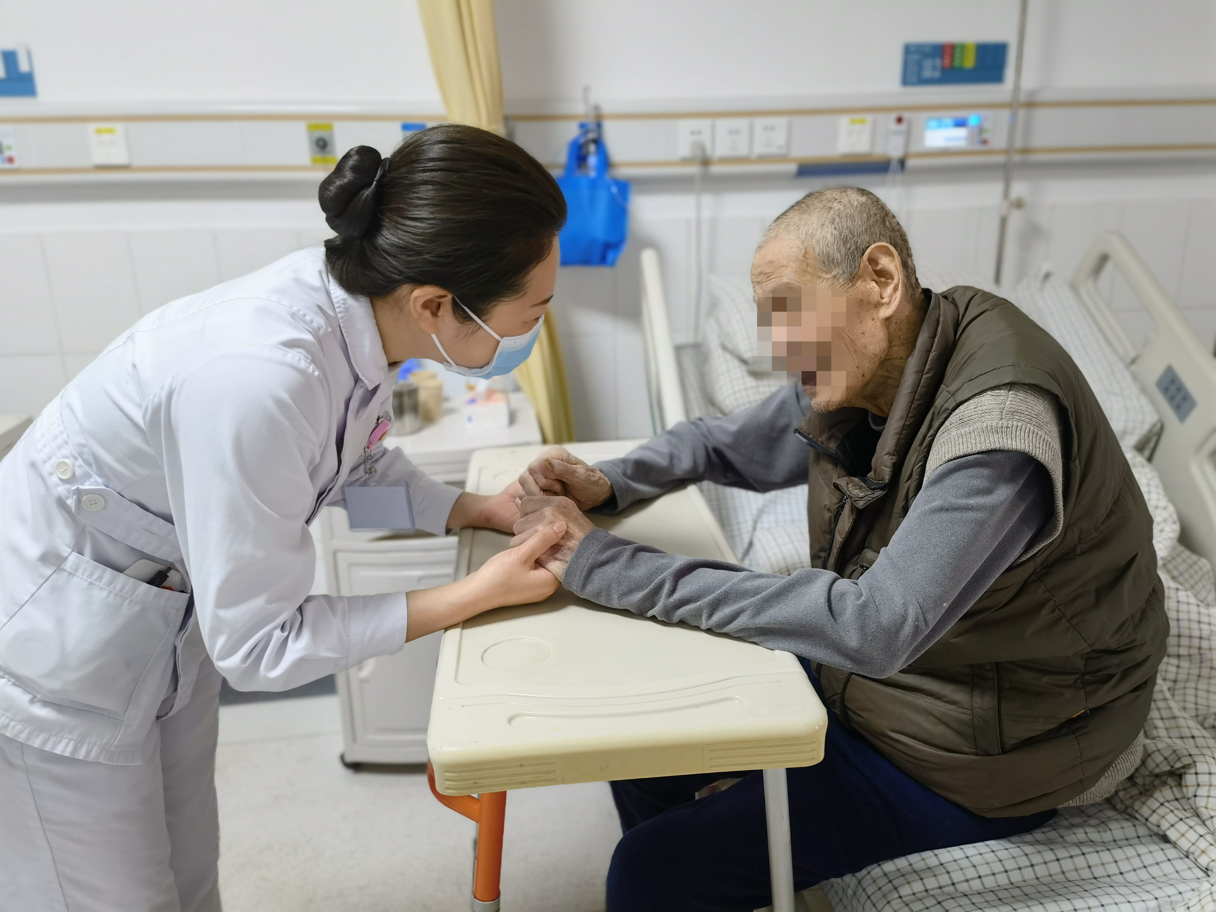 “谢谢你们来给我换药,每次辛苦你们跑来跑去,真的谢谢。”刘奶奶拉着田心院区护士小李的手,不停说着感谢。