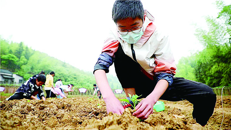 学生们在“勤耕园”劳作。肖竞 摄