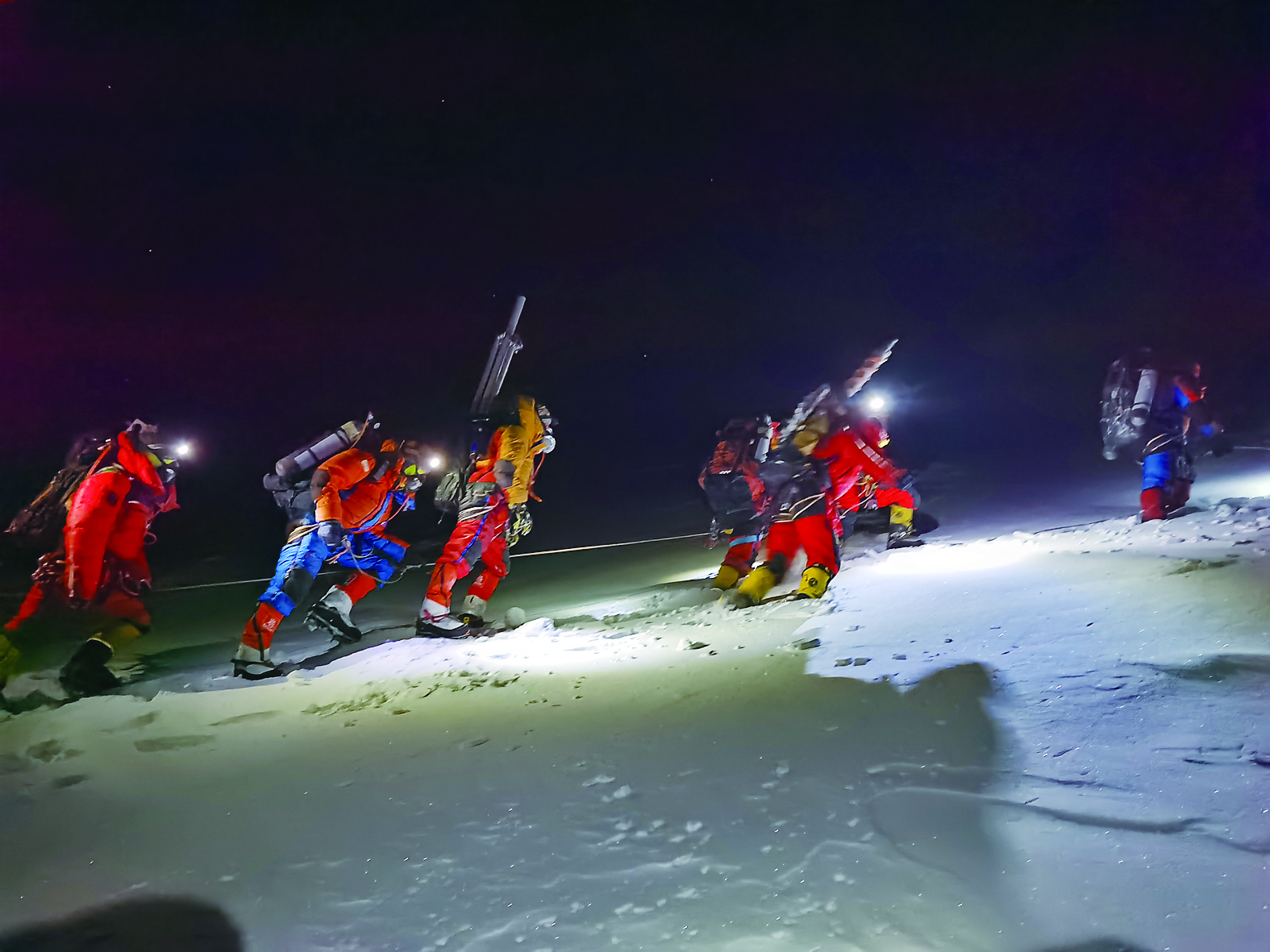 5月4日凌晨,珠峰科考队员从突击营地出发,向珠穆朗玛峰顶发起冲刺。